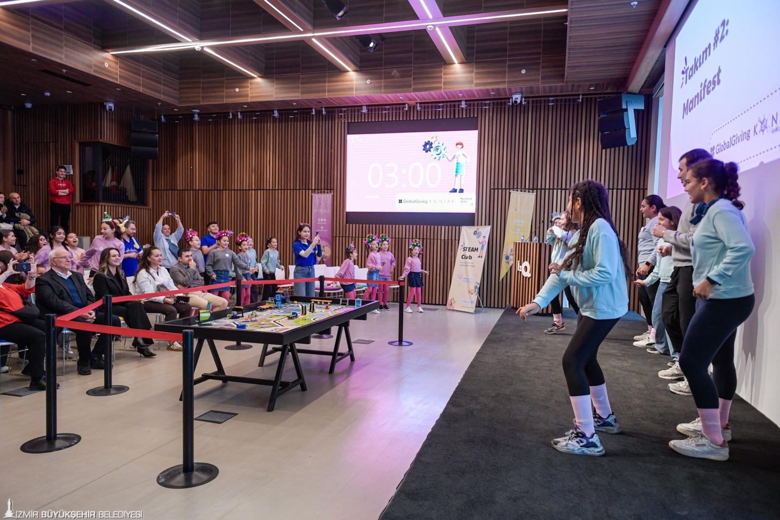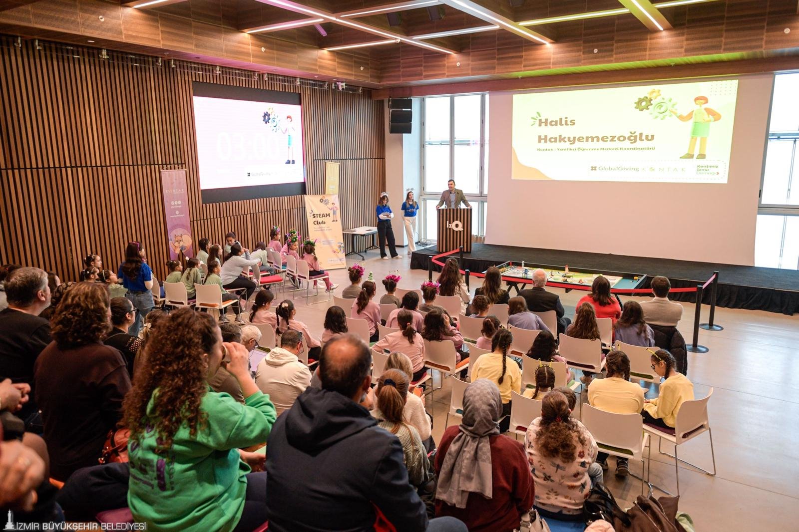 Kentimiz İzmir Derneği’nin sosyal girişimi olan ve İzmir Büyükşehir Belediyesi tarafından desteklenen Kontak-Yenilikçi Öğrenme Merkezi yürütücülüğünde, mühendislik alanında kız çocuklarının gelişimini destekleyen “STEAM Club – Kız Çocukları için Mühendislik” projesi başarıyla tamamlandı. Temmuz ayında başlayan altı aylık yoğun program, coşkulu bir final etkinliğiyle sona erdi. İzQ Girişimcilik ve İnovasyon Merkezi’nde düzenlenen final programına İzmir Büyükşehir Belediye Başkanı Dr. Cemil Tugay’ın eşi Öznur Tugay da katılarak kız çocuklarıyla bir araya geldi.