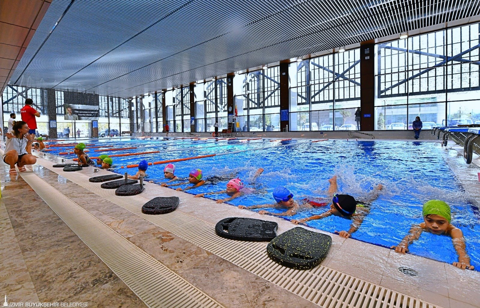 Havuz İzmir’in 12 Temmuz’da hizmete girdiğini hatırlatan Yüzme Koordinatörü Doğan Tokmer, “İki ay gibi kısa bir sürede yaklaşık 650 öğrenciye eğitim vererek çocukları en alt seviyeden en üst seviyeye çıkarmaya çalıştık. Gelen çocukların yaklaşık yüzde 90’ı yüzme bilmiyordu. Şimdi ise belirli stilde yüzebiliyorlar. Diğer yandan eğitmen kadromuz çok iyi ve çocuklarla iletişimleri gayet güzel. Burada çocuklar, ailelerine yük olmayacak bir ücrete ayda 8 saat kurs görüyorlar. Kış döneminde bile 550 kursiyerimiz var” şeklinde konuştu.