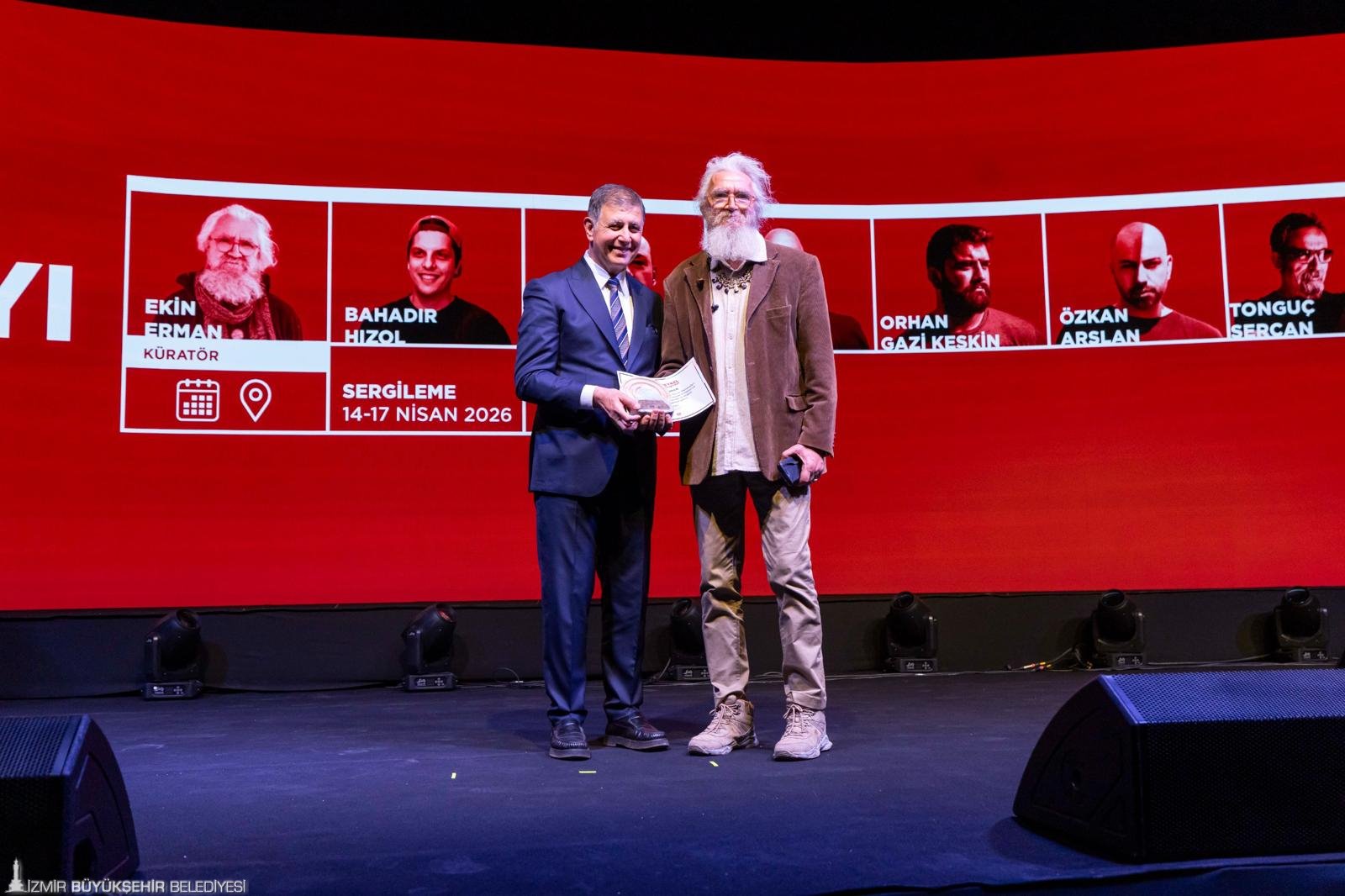 Konuşmanın ardından Başkan Tugay, Heykel Çalışytayı’nda Türkiye’nin farklı kentlerinden gelerek eserler üreten sanatçılar Kuratör Ekin Erman, Bahadır Hızol, Çağdaş Erçelik, Dilşad Akçayöz, Orhan Gazi Keskin, Özkan Arslan ve Tonguç Sercan’a plaket takdim etti. Erkin Erman, “Başkanımıza bizlere böyle bir fırsatı sağladığı için teşekkür ediyorum. Gerçekten kadim bir varlık mermer. Bütün her şeyin tanığı. Oluştuğu milyarlarca yılda her şeyi görmüş. Biz bir çekiç vurduğumuzda aslında tarihten bir parça atıyoruz ve o parça nefes almaya başlıyor. Hepsinin bizim gözümüzde farklı bir yeri var. Onun için çok değerli. Çalışması ve organizasyonu çok zor. İZFAŞ’a da çok teşekkür ederiz. İzmir’e çok güzel eserler kazandırdık, çok mutluyuz” ifadelerini kullandı.