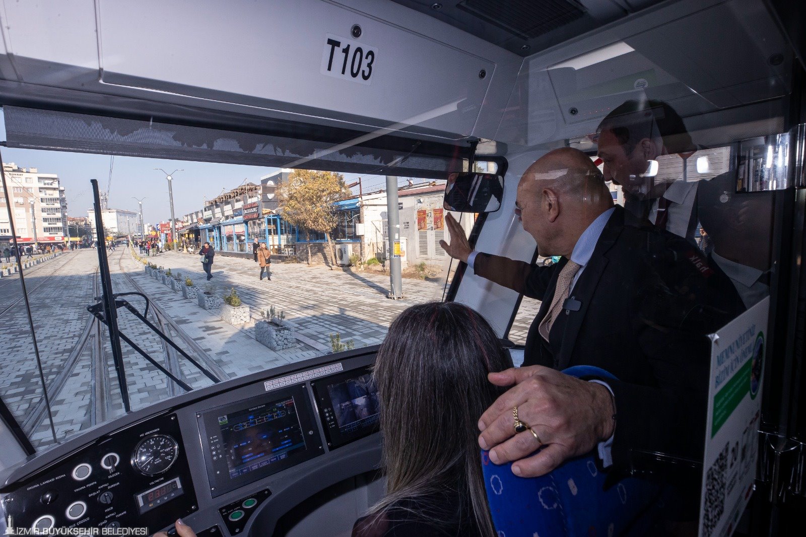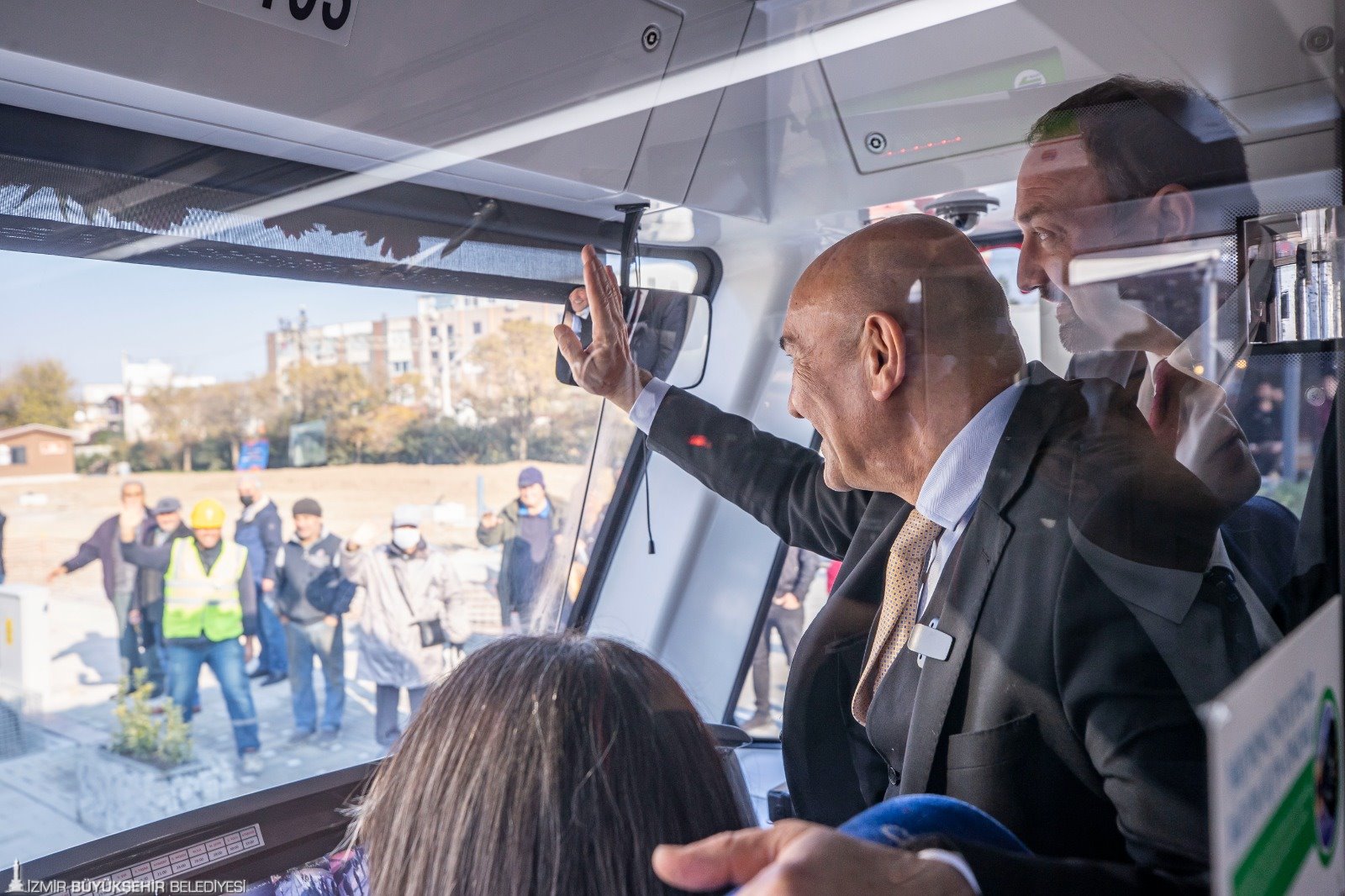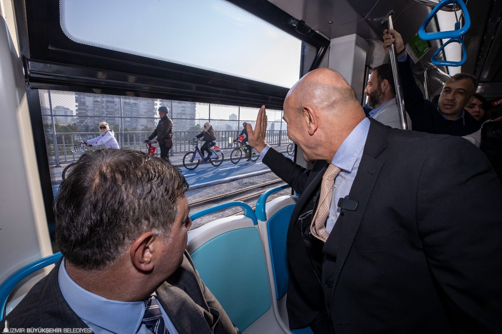 Raylı sistemlerle konforu artıracaklarını belirten Başkan Soyer, “Bizim için çok heyecanlı bir gün. Bunu yeni yılın armağanı olarak İzmir'e vermek istedik. Arkadaşlarım bugüne bunu yetiştirmeyi başardılar. Tam güzergah üzerinde tur atacak hale getirdiler. Belki onlarca yıl bu güzergahta yaşayan insanlara konfor, rahatlık, estetik sunacak bu hat bugün ilk defa kendini göstermiş oldu. Raylı sistemler hem daha estetik hem daha konforlu hem daha ucuz hem daha temiz ulaşım demek. Bizim ulaşımdaki temel tercihimiz lastik tekerleklileri bir tarafa bırakmak ve raylı sistemleri çok daha etkin, yaygın hale getirmek. Çok yoğun bir biçimde bu şehri raylı sistemlerle buluşturmaya devam edeceğiz” dedi.