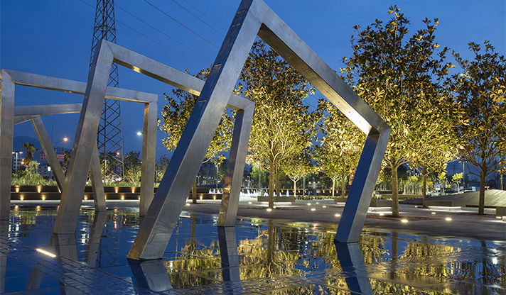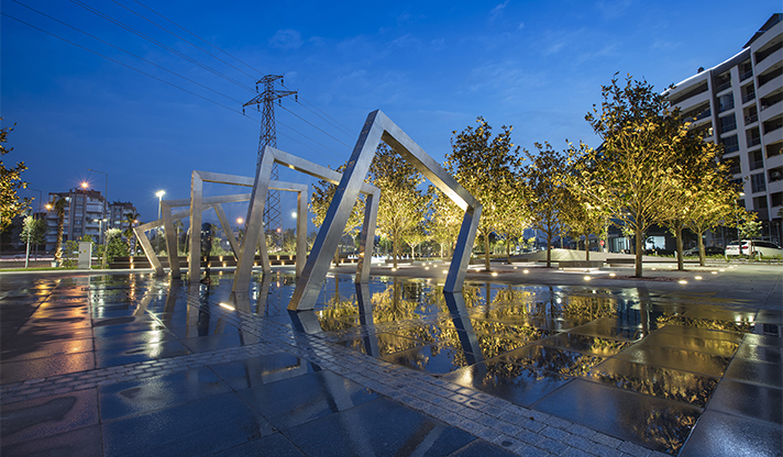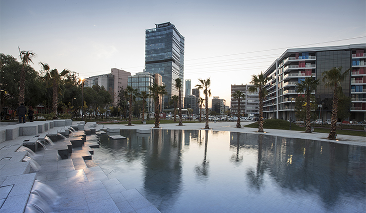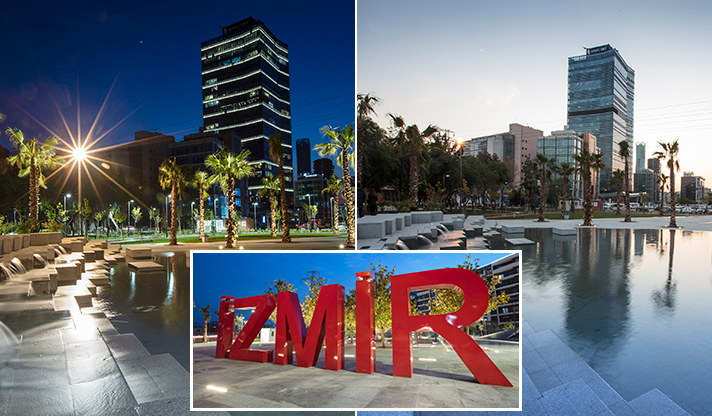 Kentin en nitelikli parklarından biri olacak Park İzmir’in ana girişinde, ziyaretçileri manolya ağaçları ile gölgelenen bir meydan karşılıyor. Bu meydanda gezenler için su perdesi ile serinleyecekleri bir su arkadı ve çocukların oyun oynayabileceği üzeri fıskiyeli bir kuru havuz yer alıyor. Söz konusu havuz, suyu kesildiğinde bir meydana dönüşerek çeşitli etkinliklere imkan tanıyor. Ayrıca parkın içinden geçen su kanalı ise sıcak yaz günlerinde serinlemek isteyenlere soluk aldıracak.