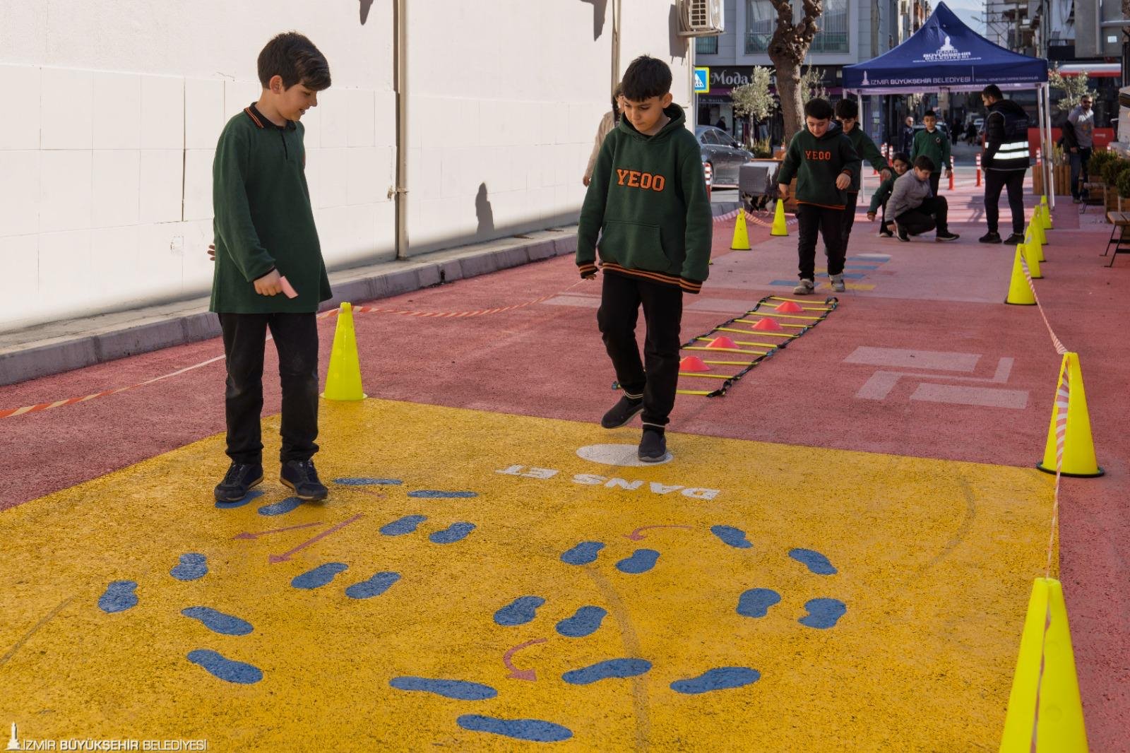 İzmir Büyükşehir Belediyesi tarafından kamusal alanların daha nitelikli bir hale getirilmesi için başlatılan Güzel İzmir Hareketi kapsamında, Karabağlar Cevdet Güçlüer İlkokulu ve Yunus Emre Ortaokulu çevresi bambaşka bir görünüme kavuşturuldu. “Güvenli Okul Çevreleri” temasıyla düzenlenen 4238 Sokak yayalaştırılarak Oyun Sokağı’na dönüştürüldü. Peyzaj çalışmasının yanı sıra yeni oturma alanları ve kent mobilyalarının eklendiği alanda Çocuk Çalışmaları ve Eğitim Destekleri Şube Müdürlüğü tarafından “Oyunlar da Bizim Sokaklar da Bizim” etkinliği yapıldı. Hem okulun öğrencileri hem de mahalleli çocuklar bir araya gelerek Oyun Sokağı’na çizilen temalar üzerinden beden ve zekâ geliştirici oyunlar oynadı. Çocuklar, sokakta bulunan "Duygu Duvarı" köşesinde ise boyama çalışması yaptı. Etkinlikte, çocukların en sevdiği şarkıların melodileri çocuk kahkahalarına karıştı. Etkinlikten sadece çocuklar değil, onları güvenle sokağa çıkaran anneler de memnun kaldı.