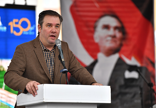 Büyükşehir Belediye Başkanı Aziz Kocaoğlu'nun, Buca Belediye Başkanı Levent Piriştina ile birlikte bu parka çok emek verdiğini ve açılışı da çok heyecanla beklediğini dile getiren Aydoğan, "Kendisi ağır bir grip geçirdiği için açılış törenine katılamadı. Ama bugün ben dahil hepimiz onun vekiliyiz" diye konuştu.