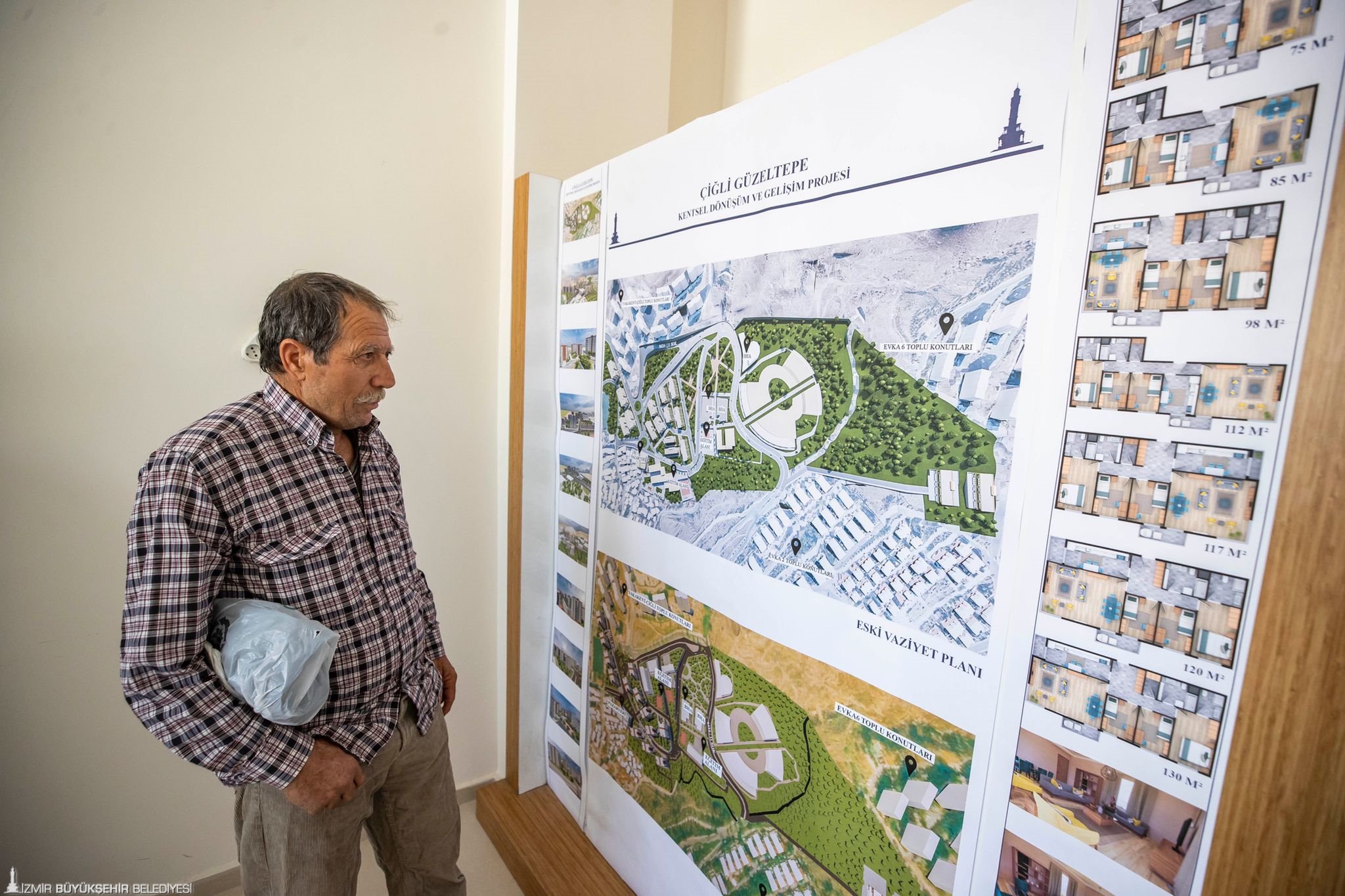 İzmir Büyükşehir Belediyesi’nin yüzde yüz uzlaşı ve yerinde dönüşüm ilkesiyle Çiğli’nin Güzeltepe Mahallesi’nde yapmayı planladığı kentsel dönüşüm projesinde, talepler üzerine yenilenen proje hak sahiplerine sunuldu. İzmir Büyükşehir Belediyesi’nin güvencesi ve garantörlüğüyle yürütülen dönüşüm projesinde yurttaşların talepleri doğrultusunda yapılan değişiklikleri İzmir Büyükşehir Belediye Başkanı Tunç Soyer açıkladı. Güzeltepe Kentsel Dönüşüm Projesi İletişim ve Tanıtım Merkezi’ndeki toplantıya Başkan Soyer’in yanı sıra Çiğli Belediye Başkanı Utku Gümrükçü, Cumhuriyet Halk Partisi Çiğli İlçe Başkanı Mert Özcan, İzmir Büyükşehir Belediyesi Genel Sekreter Yardımcısı Suphi Şahin ve hak sahipleri katıldı.