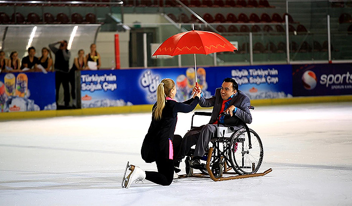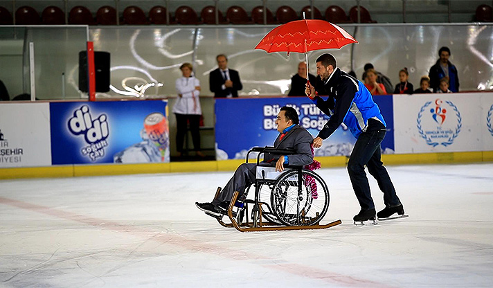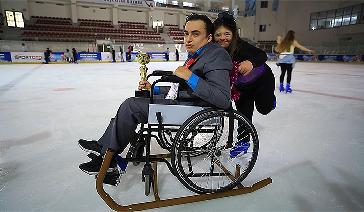 İzmir Büyükşehir Belediyesi’nin kente kazandırdığı Bornova Aşık Veysel Rekreasyon alanı içindeki Olimpik Buz Sporları Salonu, sadece bu spora gönül vermiş İzmirlilere değil, bedensel engellilerle, otizm ve down sendromlu gençlere de hizmet ediyor. İzmir Büyükşehir Belediyesi Olimpik Buz Sporları Salonu, her perşembe günü buz üstünde engelleri kaldırarak hayalleri gerçekleştiriyor.