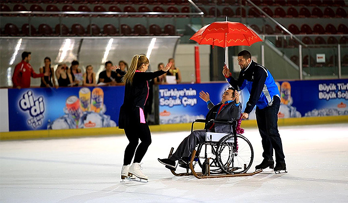 Bedensel engelli Halis Dönmezer ile down sendromlu Selin Erkan, bu şanslı gençlerden ikisi. Selin’in buz pateni sporuyla tanışması, çok ilginç bir tesadüfle başladı. İlk kez geldiği buz pistinde üşüyen Selin’i farkeden buz pateni hocası Neşe Olcay, kostümlerden bir tane ona vererek giymesini istedi. Selin kostümü çok beğenince, bir anda buz patenine ilgisi de başladı. Genç kız, kısa süre içinde hocaların farklı koreografileri öğretmesiyle sadece perşembeleri değil, haftanın hemen her günü soluğu buz pistinde aldı.