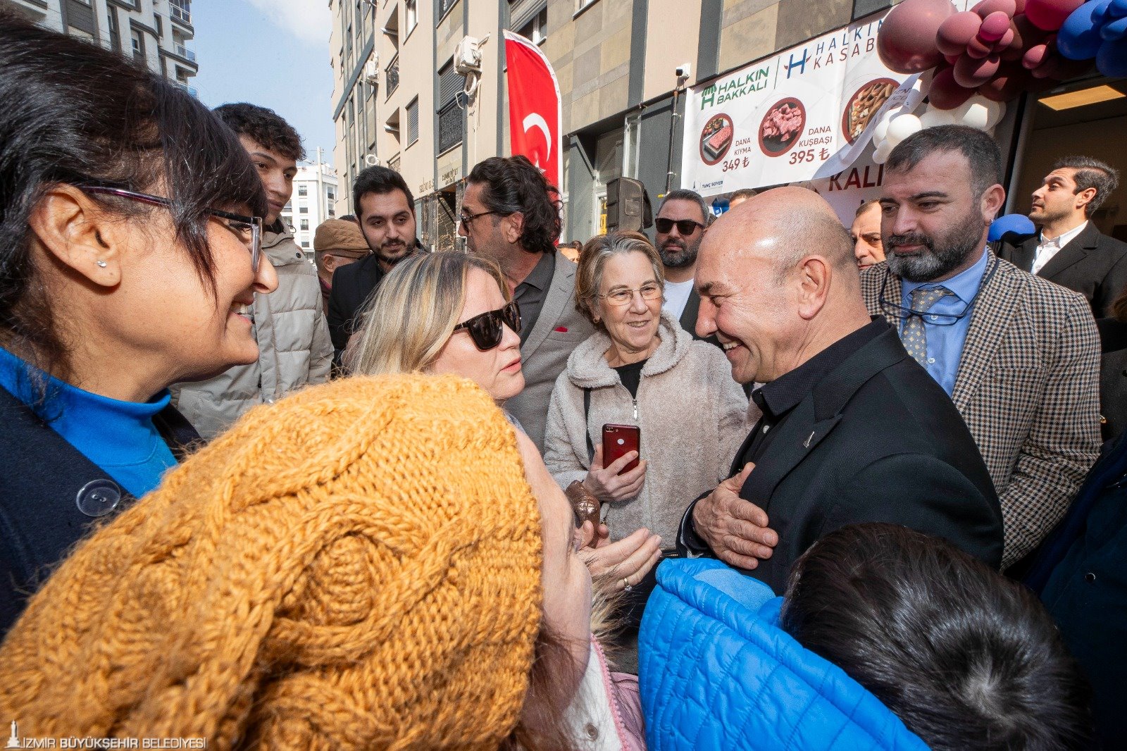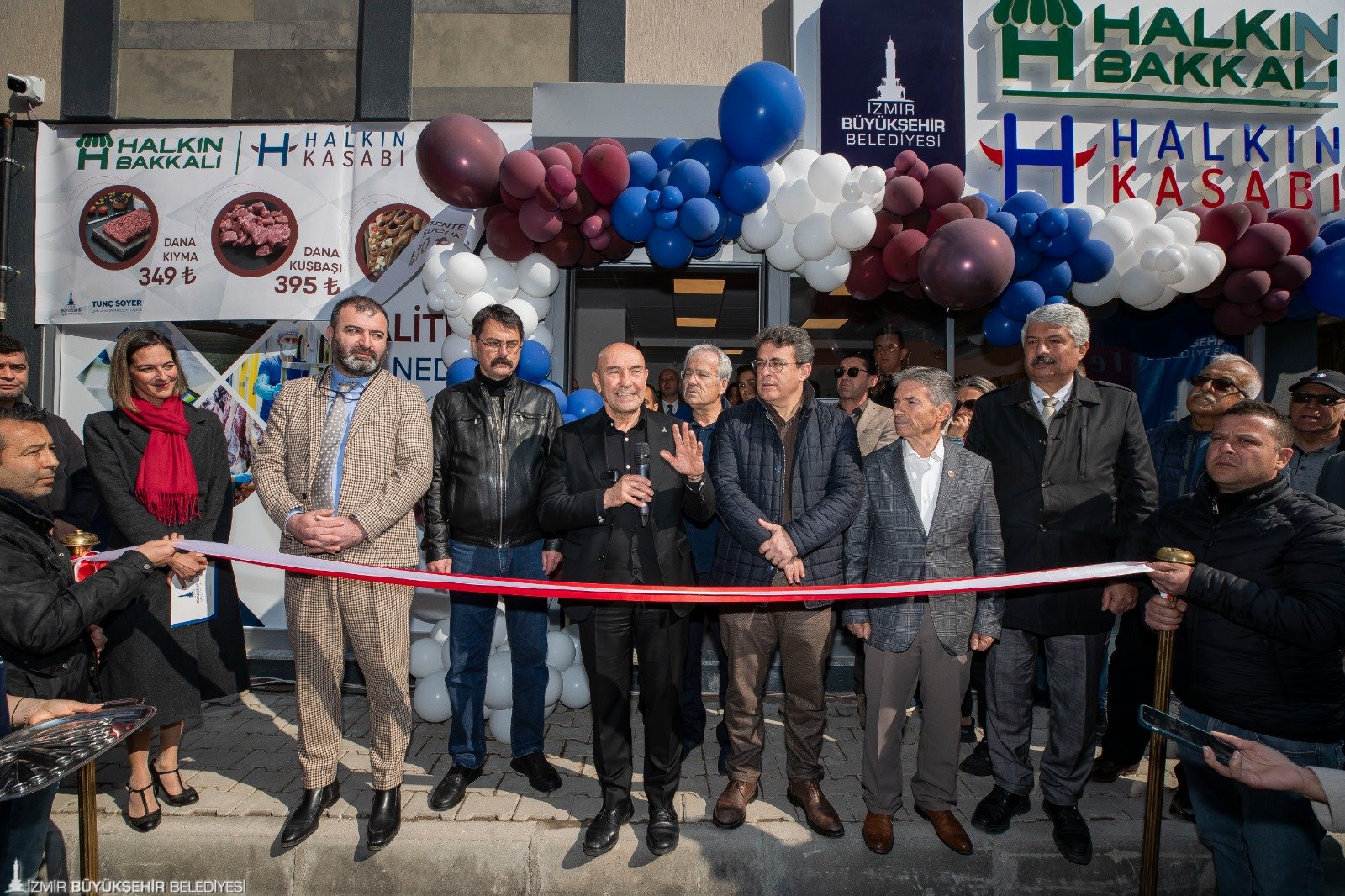 İzmir Büyükşehir Belediye Başkanı Tunç Soyer’in halka sağlıklı, ekonomik ve güvenilir gıda ulaştırmak için kentin farklı bölgelerinde açtığı Halkın Bakkalı-Halkın Kasabı mağazalarına bir yenisi eklendi. Halkın Bakkalı-Halkın Kasabı 14’üncü şubesini Karşıyaka Şemikler’de açtı. Yurttaşların et ürünlerinin yanı sıra İzmirli markalı süt ürünleri, bitkisel ürünler ve Türkiye’nin dört bir yanından kooperatiflerin ürettiği doğal ve sağlıklı ürünlere ulaşabildiği Halkın Bakkalı-Halkın Kasabı mağazaları, mutfak giderlerinde önemli tasarruf sağlıyor. Yurttaşları enflasyona karşı koruyan Halkın Bakkalı-Halkın Kasabı’nın Şemikler şubesinin açılışını yapan İzmir Büyükşehir Belediye Başkanı Tunç Soyer, “Belediyecilik beşikten mezara kadar hayatın her alanına dokunuyor. Bugün de bu bölgede oturan vatandaşlarımızın aile ekonomisine katkı yapacağını umduğumuz bir açılış yapıyoruz. Sağlıklı, güvenilir, temiz ve makul fiyatlı ürünlere erişimi vatandaşlarımız buradan sağlayabilecek” dedi.