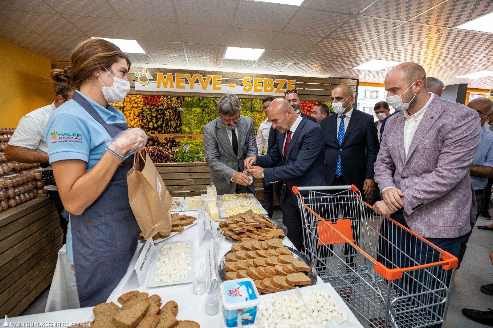 İzmir Büyükşehir Belediye Başkanı Tunç Soyer’in seçim dönemi vaatleri arasında yer alan Halkın Bakkalı, kooperatiflerin ürünlerini pazarlayabilmesi, tüketicilerin de sağlıklı ve güvenilir gıdaya ulaşabilmesini amaçlıyor. Böylece hem küçük üreticinin desteklenmesi hem de yurttaşın korunması hedefleniyor. İzmir başta olmak üzere Türkiye’nin her yerinden üretici kooperatiflerinin ürünleri aracısız olarak Halkın Bakkalı’nda satışa sunuluyor. Halkın Bakkalı şubelerinde meyve sebze, et, süt ürünleri, çeşitli kahvaltılıklar, bakliyat, zeytinyağı, baharat ve kozmetik gibi ürün gruplarından 300 farklı ürün bulunuyor. Ürün çeşitliliği, ülke genelinde kooperatiflerden temin edilen ürünlerle her geçen gün artıyor.