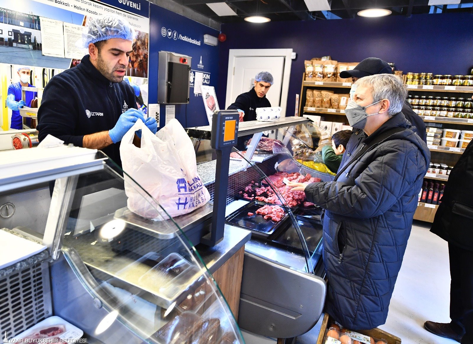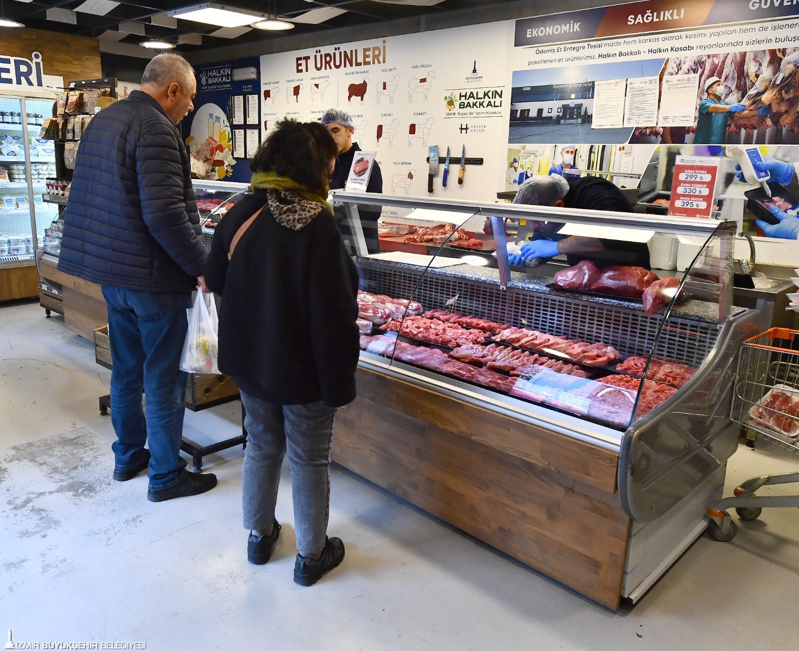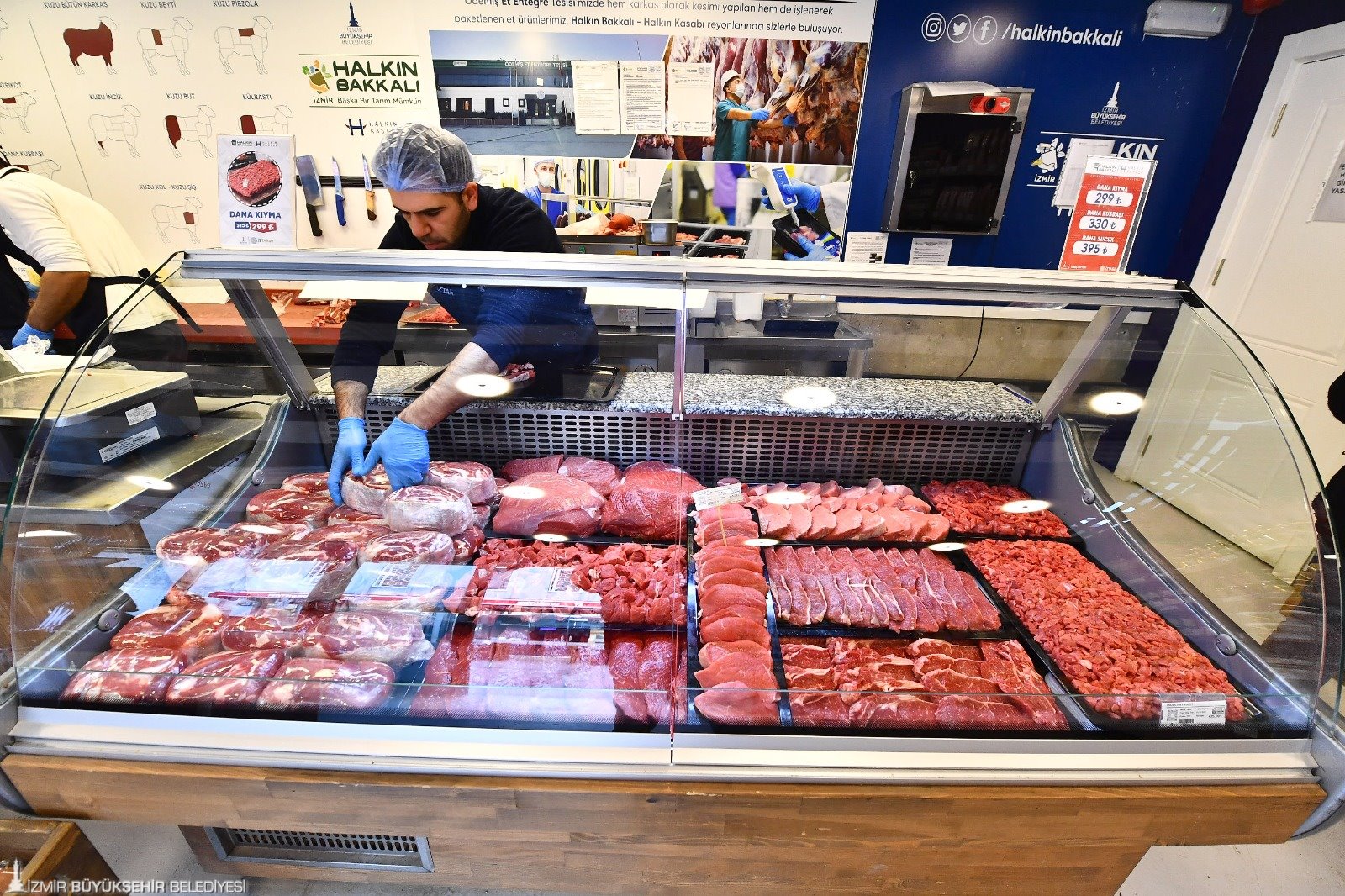 İzmir Büyükşehir Belediye Başkanı Tunç Soyer’in “Başka Bir Tarım Mümkün” vizyonu doğrultusunda doğan ve halka sağlıklı, ucuz ve güvenilir gıda ulaştırmak için hayata geçirilen Halkın Bakkalı/Halkın Kasabı mağazaları, enflasyona karşı vatandaşın sofrasına umut olmaya devam ediyor. İzmir Büyükşehir Belediyesi’nin iştiraki İzTarım A.Ş. tarafından yürütülen çalışmalar kapsamında, tamamen yerli üreticiden alınan besiler, Ödemiş Et Entegre Tesisi’nde karkas et ve İzmirli markalı et ürünleri olarak işleniyor. Hazırlanan et ürünleri, gezici otobüsüyle sayıları 12’ye ulaşan Halkın Bakkalı/Halkın Kasabı mağazalarında uygun fiyat etiketiyle tüketiciyle buluşturuluyor.