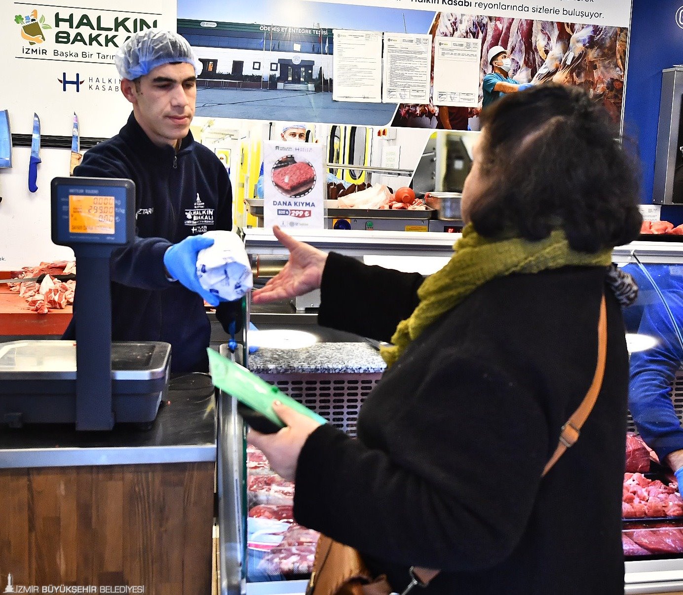 Halkın Kasabı mağazalarında satışa sunulan kırmızı et ürünleri, ucuz, sağlıklı ve lezzetli yapısıyla kısa sürede İzmirli yurttaşların vazgeçilmezi oldu. Piyasada kilosu 400 TL’yi geçen etlere karşın Halkın Kasabı, dana kıymanın kilosunu 299 TL’den, dana kuşbaşının kilosunu 330 TL’den ve Halkın Kasabı sucuklarının kilosunu 395 TL’den satışa sunuyor. Mağazalarda kuyruklar oluşturan yurttaşların ilgisiyle, Halkın Kasabı mağazalarında günlük kırmızı et satışı 5 tona ulaştı.
