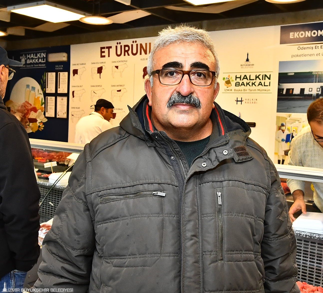 Erdoğan Kiraz: “Gayet memnunum. O yüzden de alışverişlerimi buradan yapıyorum. Etler kaliteli ve lezzetli, fiyatı da uygun. Bu imkânı sağlayan belediye başkanımıza teşekkür ediyorum. Bütün ürünlerinden memnunum. Personelin ilgisi ayrı bir güzellik. Kaliteli ürün almak önemli ama bir o kadar da kaliteli hizmet gerekiyor. Bu hizmetten mutluyuz. Yöneticilerin halkını düşünmesi öncelikli bir konu. Bu önceliği de biz İzmir’de görüyoruz.”