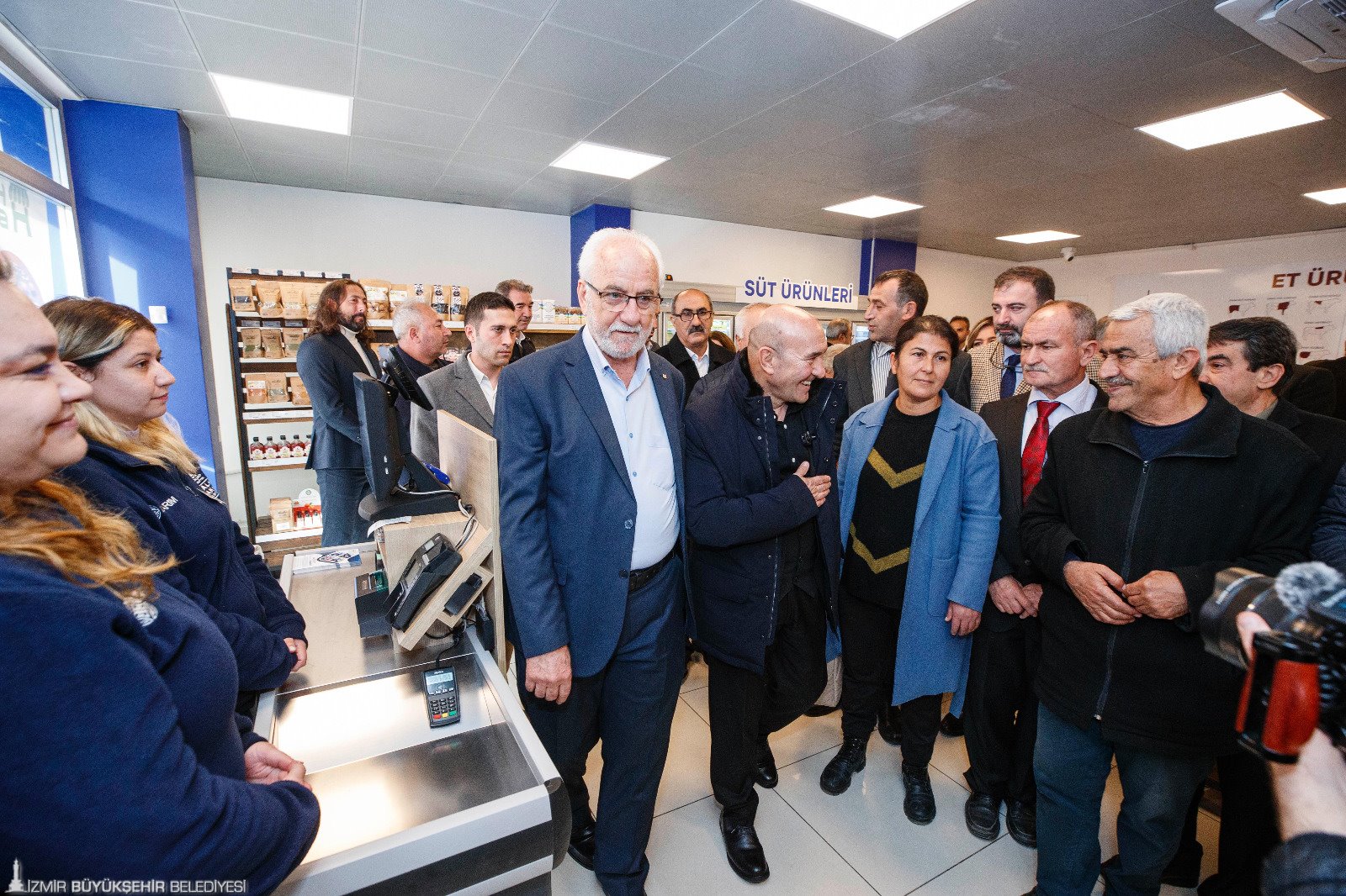 İzmir Büyükşehir Belediye Başkanı Tunç Soyer’in “Başka Bir Tarım Mümkün” vizyonu doğrultusunda doğan ve halka sağlıklı, ucuz ve güvenilir gıda ulaştırmak için hayata geçirilen Halkın Bakkalı/Halkın Kasabı mağazaları, enflasyona karşı İzmirlilerin sofrasına hizmet etmeye devam ediyor. İzmir Büyükşehir Belediyesi Halkın Bakkalı/Halkın Kasabı’nın 13. Şubesini Karabağlar Bozyaka’da hizmete açtı. İzmir Büyükşehir Belediye Başkanı Tunç Soyer yeni şubeyi ziyaret ederek alışveriş yapan İzmirlilerle sohbet etti. Başkan Tunç Soyer’e İzTarım A.Ş. Genel Müdürü Murat Onkardeşler, İzmir Büyükşehir Belediyesi bürokratları ve mahalle muhtarları eşlik etti.