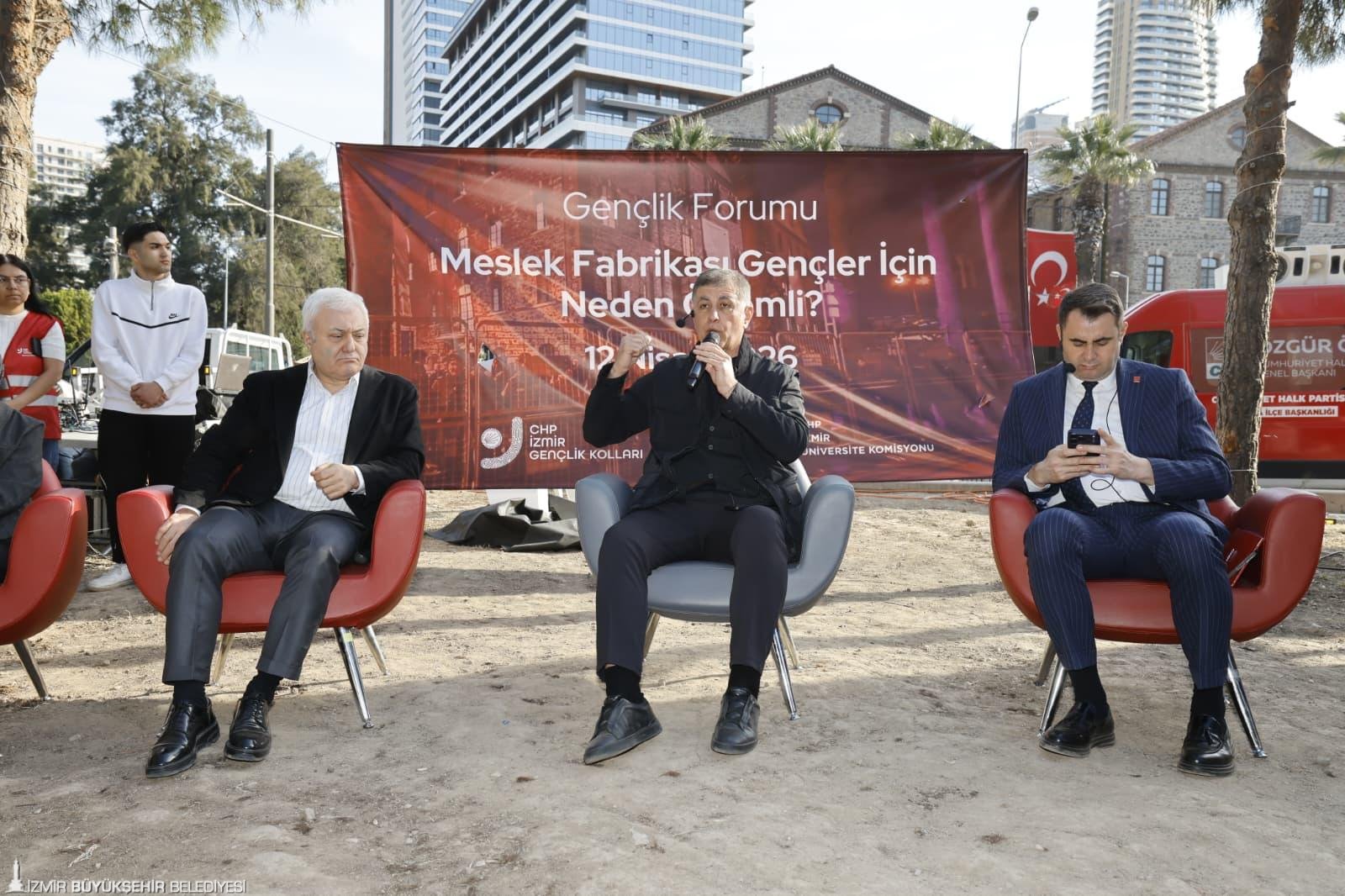 CHP İzmir İl Gençlik Kolları tarafından Meslek Fabrikası direnişine destek için düzenlenen Gençlik Forumu’nda Başkan Tugay, üniversite döneminde bağımsız olarak gerçekleştirdiği direniş hatıralarını anlattı. Gençlik döneminde siyaseti kendilerine kötü tanıttıklarını söyleyen Başkan Tugay, “Siyaset; iyi ve doğru olduğunu bildiğiniz şeyi savunmak, kötü ve yanlış olduğu bildiğiniz şeye karşı çıkmaktır. Haksız olduğuna, kesinlikle yanlış olduğuna eminseniz ve herkes sizin gibi düşünüyorsa; hep beraber, örgütlü olarak hareket etmek ve buna itiraz etmek gerekir. Bunu yapmazsanız mutlaka yeni bir şey olur. Üniversitedeki eğitim şartlarından, yurtlardan mezun olduktan sonra iş bulamamaktan şikayet ediyoruz. Bunlar bir şeylerin sonucu. Yani Meslek Fabrikası'nı polis zoruyla gelip ele geçirenler aynı zamanda şöyle diyorlar: Ben üniversite hocasını liyakat üzerinden değil, kendi yandaşlarım arasından atarım. onlara öyle kadro veririm. Bu ülkenin gençleri iyi eğitim mi almış, almamış mı umurlarında değil” dedi.
