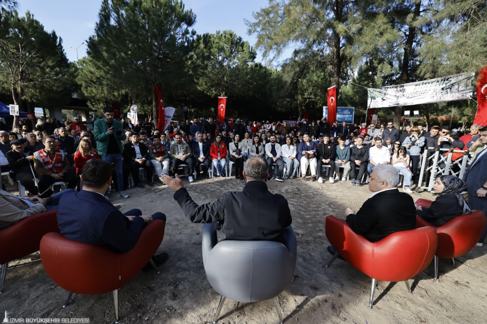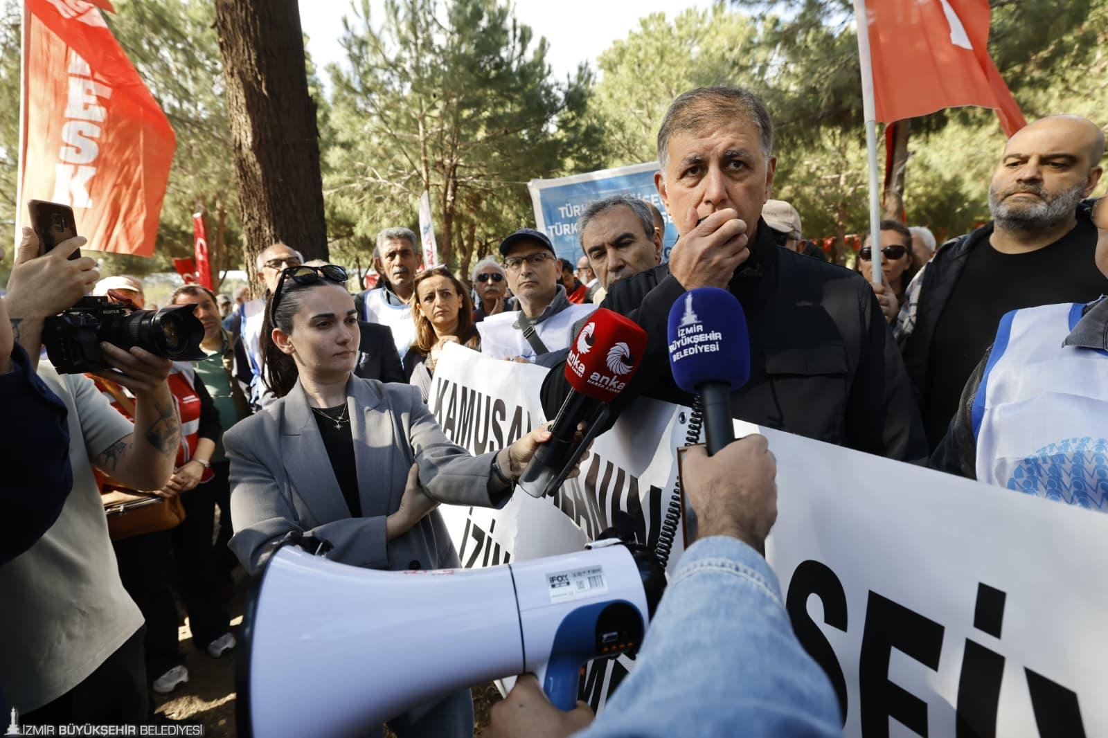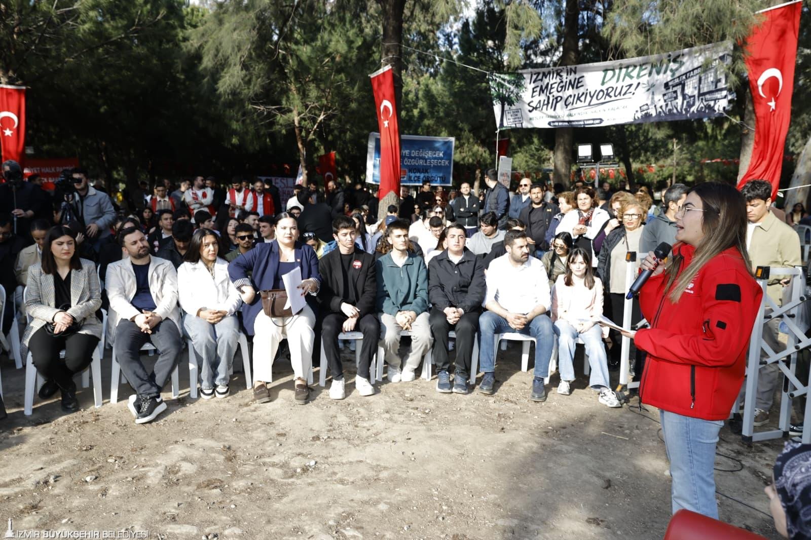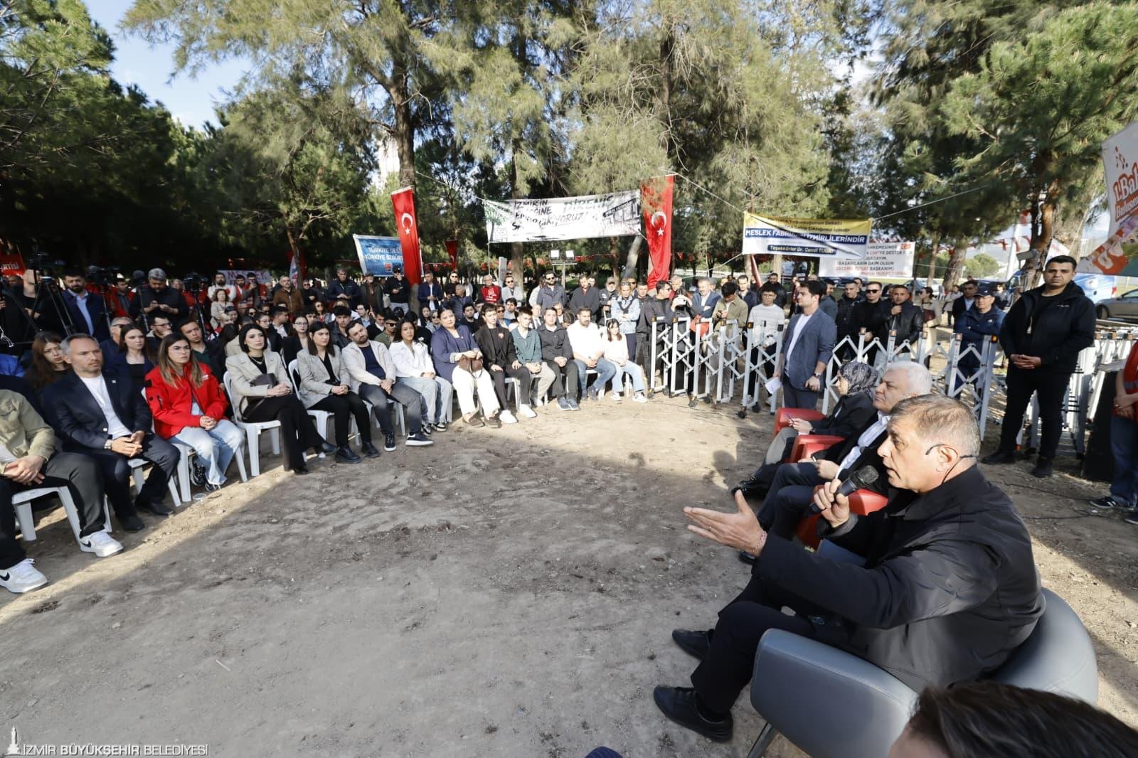 Türkiye’nin dört bir yanında yaşananlara dikkat çeken Başkan Tugay, “Türkiye’de uzun süredir herhangi bir protesto olduğunda gösterilen karşılığı hepimiz görüyoruz. Vatandaşlarımızın sözlerinde hep haksızlıklara isyan var. Konu sadece Meslek Fabrikası da değil. Biz barışçıl bir şekilde demokratik hakkımızı kullanıyoruz. Bu fabrikanın içindeki eşyaları çıkarmaya kalkarlarsa buna engel olmak adına buradayız” diye konuştu.