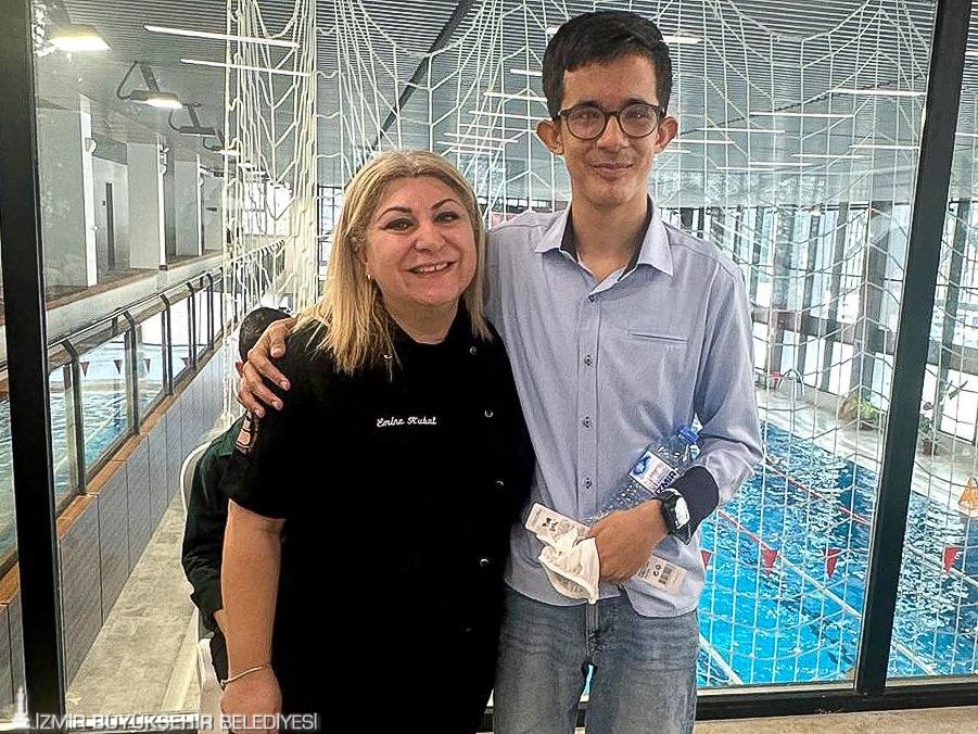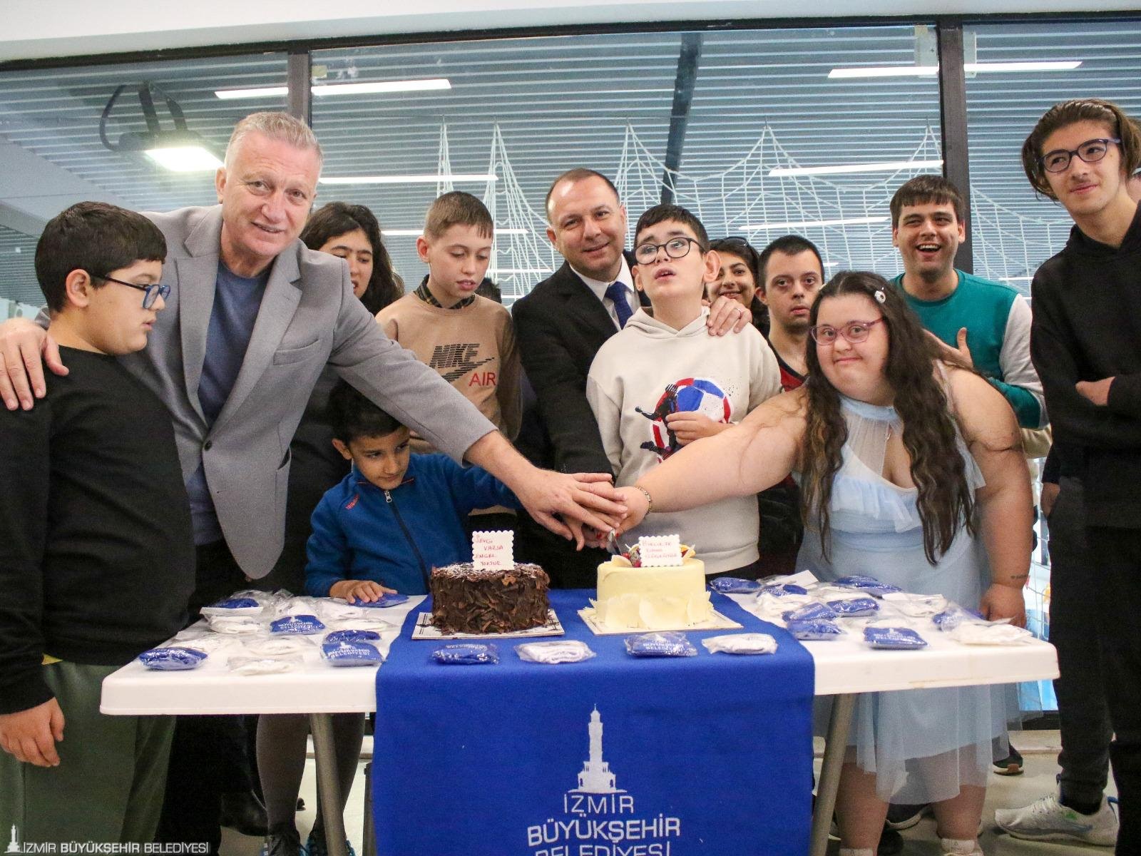 İzmir Büyükşehir Belediyesi’nin üç yıldır kesintisiz sürdürdüğü ve 47 özel gereksinimli kursiyere yüzme eğitimi verdiği “Sevgi Varsa Engel Yoktur, Hep Birlikte Güçlüyüz” projesi, Dünya Engelliler Günü kapsamında düzenlenen anlamlı bir etkinlikle taçlandı. Bornova Aşık Veysel Rekreasyon Alanı’ndaki Havuz İzmir’de gerçekleştirilen organizasyonda, otizmli ve down sendromlu kursiyerler eğitmenler eşliğinde keyifli anlar yaşadı. Etkinliğe Gençlik ve Spor Hizmetleri Daire Başkanı Berkhan Alptekin ile Spor Çalışmaları Şube Müdürü Gürcan Temizel katıldı. Türkiye Butik Pastacılar ve Şeker Hamurcular Derneği Başkanı Emine Kubat tarafından hazırlanan, üzerinde engelli çocuk figürleri bulunan şeker hamuru pastalar büyük bir coşkuyla kesildi. Pasta kesiminin ardından kursiyerlere özel yüzme boneleri dağıtıldı ve şeker hamurundan çiçek yapma etkinliği düzenlendi.