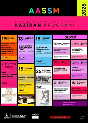 İzmirli sanatseverler, yazın ritmini yine AASSM’de tutuyor. Haziran ayının açılış konseri, 1 Haziran’da Türkiye Polifonik Korolar Derneği (TPKD) İzmir Şubesi Korolarının ücretsiz performansıyla Büyük Salon’da yapıldı. 3 Haziran’da Virtüözlerden Baroktan Romantizme adlı konser ile başlayan, İzmir Kültür Sanat ve Eğitim Vakfı’nın (İKSEV) düzenlediği 38. Uluslararası İzmir Festivali ise sürüyor. Festival kapsamında 12 Haziran’da AASSM Küçük Salon’da Ceyda Tanç Dance-Ayna gösterisi var. 17 Haziran’da AASSM Büyük Salon’da Geneva Camerata-Revolta, 19 Haziran’da AASSM Büyük Salon’da ise Ege Üniversitesi Sağlık, Kültür ve Spor Daire Başkanlığı Klasik Türk Müziği Korosu “Söz ve Sazda İzmir” konseri sahnelenecek. AASSM’nin ev sahipliği yapacağı son etkinlik ise 24 Haziran’da AASSM Büyük Salon’da gerçekleştirilecek Türkiye-Polonya Dostluk Konseri olacak. Konserler saat 21.00’de olacak.