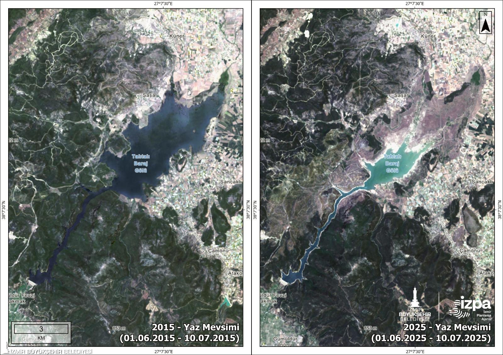 İzmir’in en büyük içme suyu kaynağı Tahtalı Barajı’nda doluluk oranı yüzde 10’a kadar düştü. İklim değişikliği, düzensiz yağış rejimi ve artan nüfus baskısı nedeniyle şehrin su kaynakları alarm veriyor. İzmir Büyükşehir Belediyesi'nden yapılan açıklamada mevcut gidişatın devam etmesi halinde önümüzdeki yıllarda ciddi su sıkıntısı yaşanabileceği vurgulanırken, “Her Damla Değerli” vurgusuyla acil tasarruf çağrısı yapıldı.