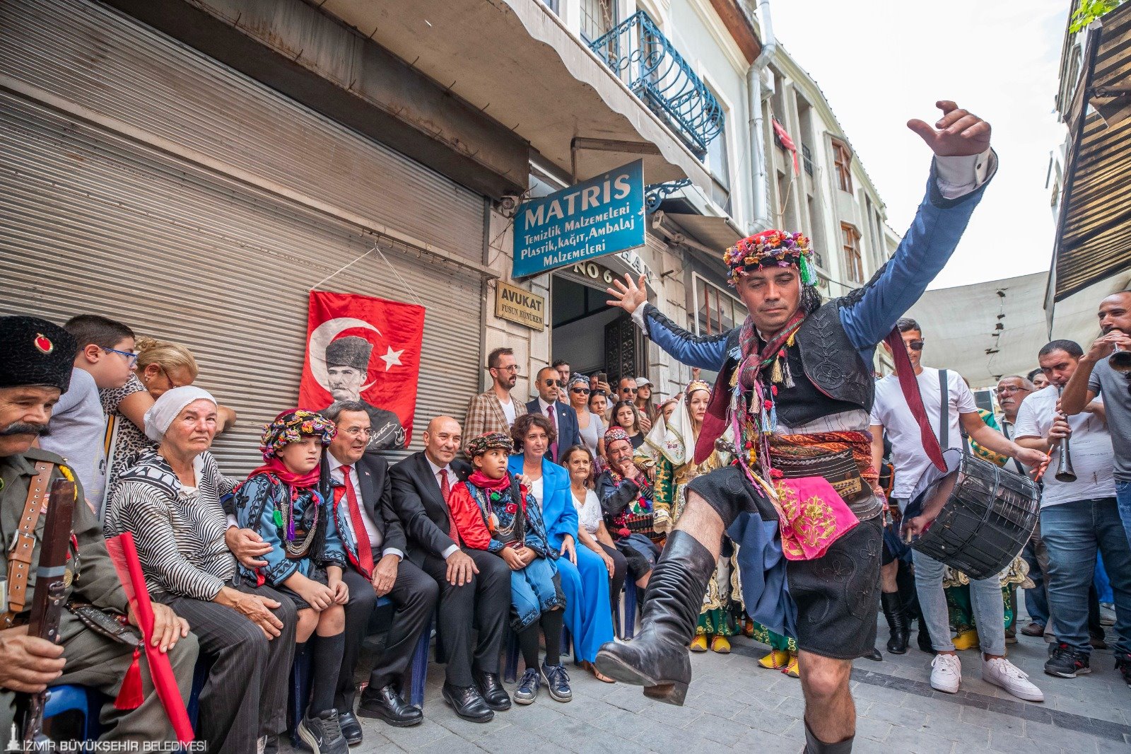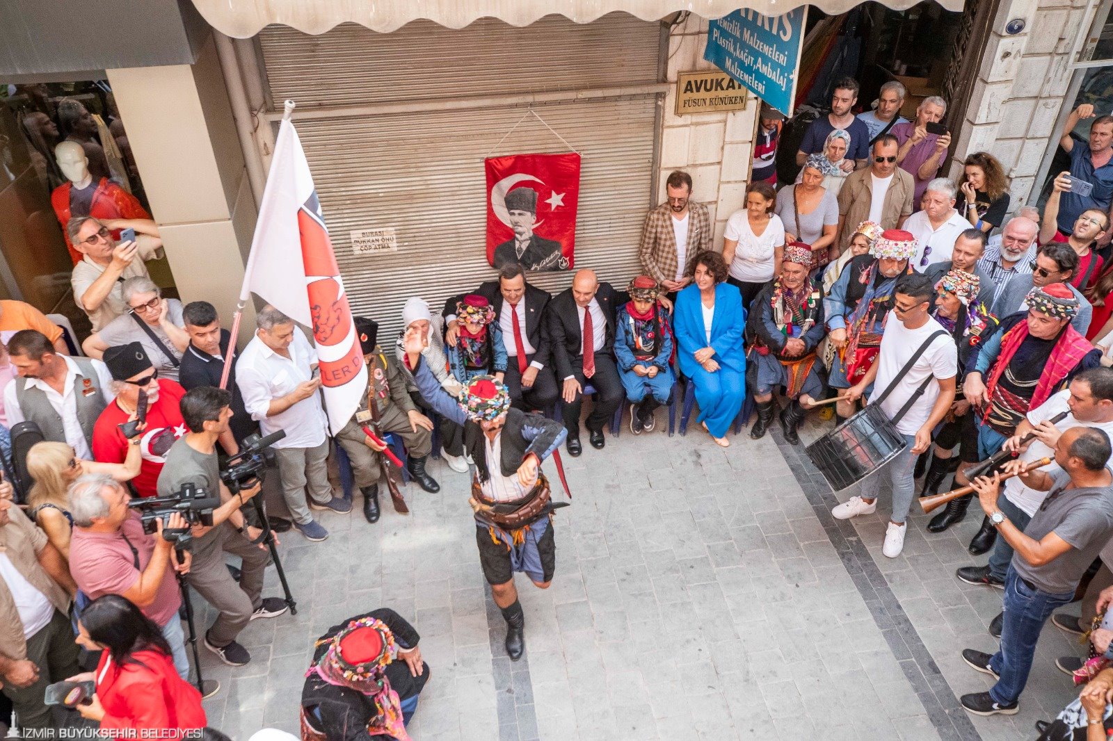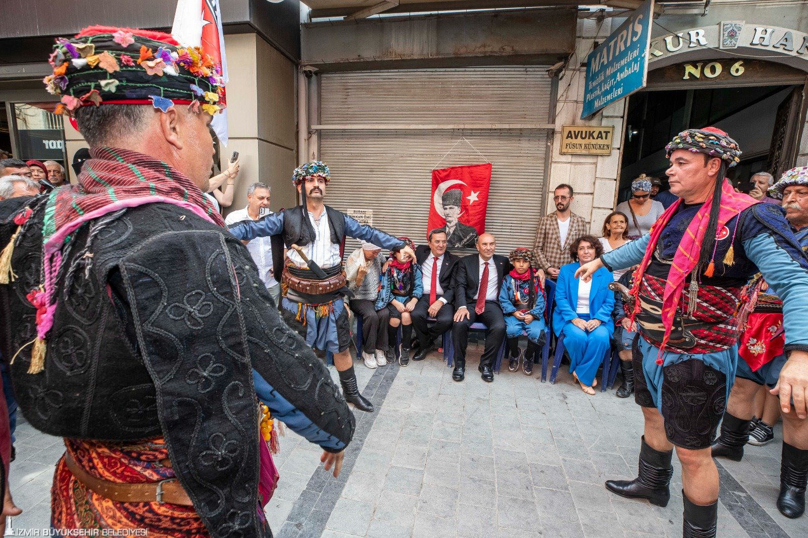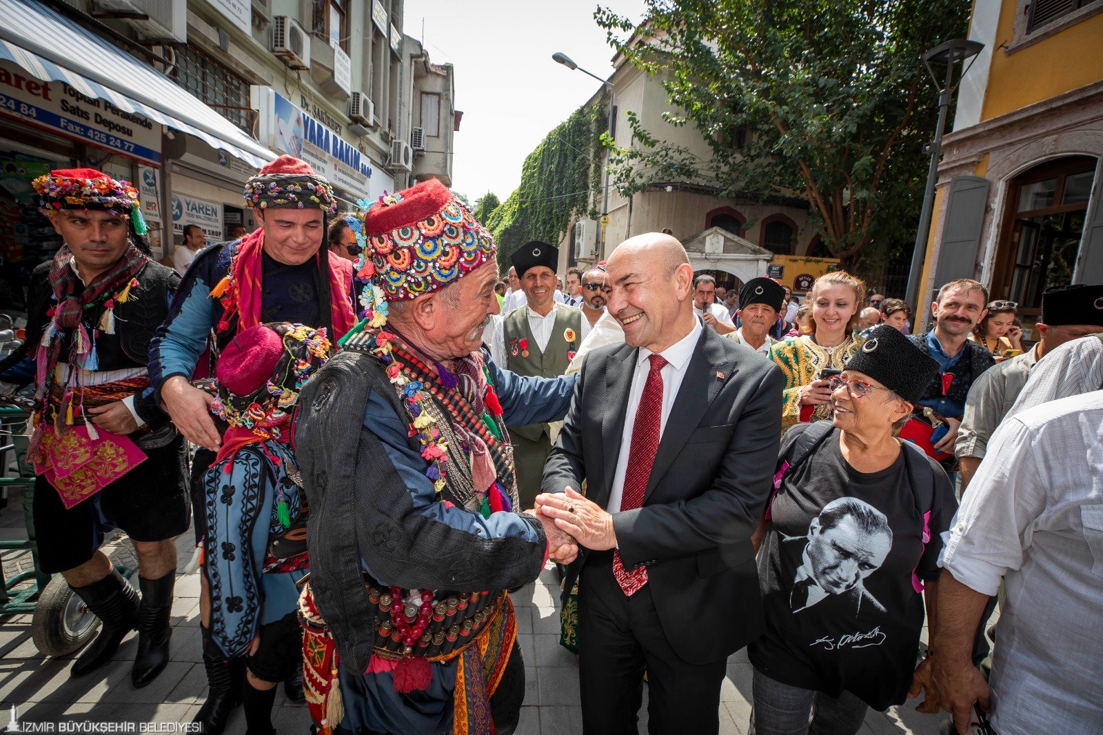 İzmir Büyükşehir Belediye Başkanı Tunç Soyer, Kemeraltı İkinci Beyler Sokağı’nda 73 yıldır her 9 Eylül’de düzenlenen Efe-Zeybek Buluşması’na katıldı. Geleneksel törende 9 Eylül coşkusuna efelerin zeybek gösterileri renk kattı. Tarihi çarşıda efe-zeybek kültürünün merkezi haline gelen Hür Efe antika mağazasının önünde yapılan törende İzmir Büyükşehir Belediye Başkanı Tunç Soyer, zeybek gösterisi izledi.
