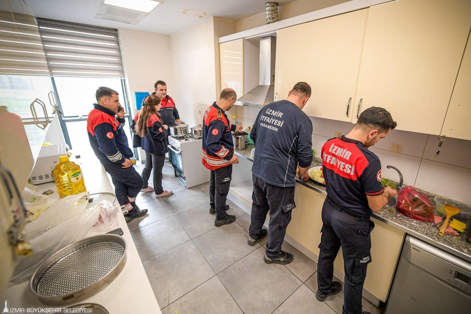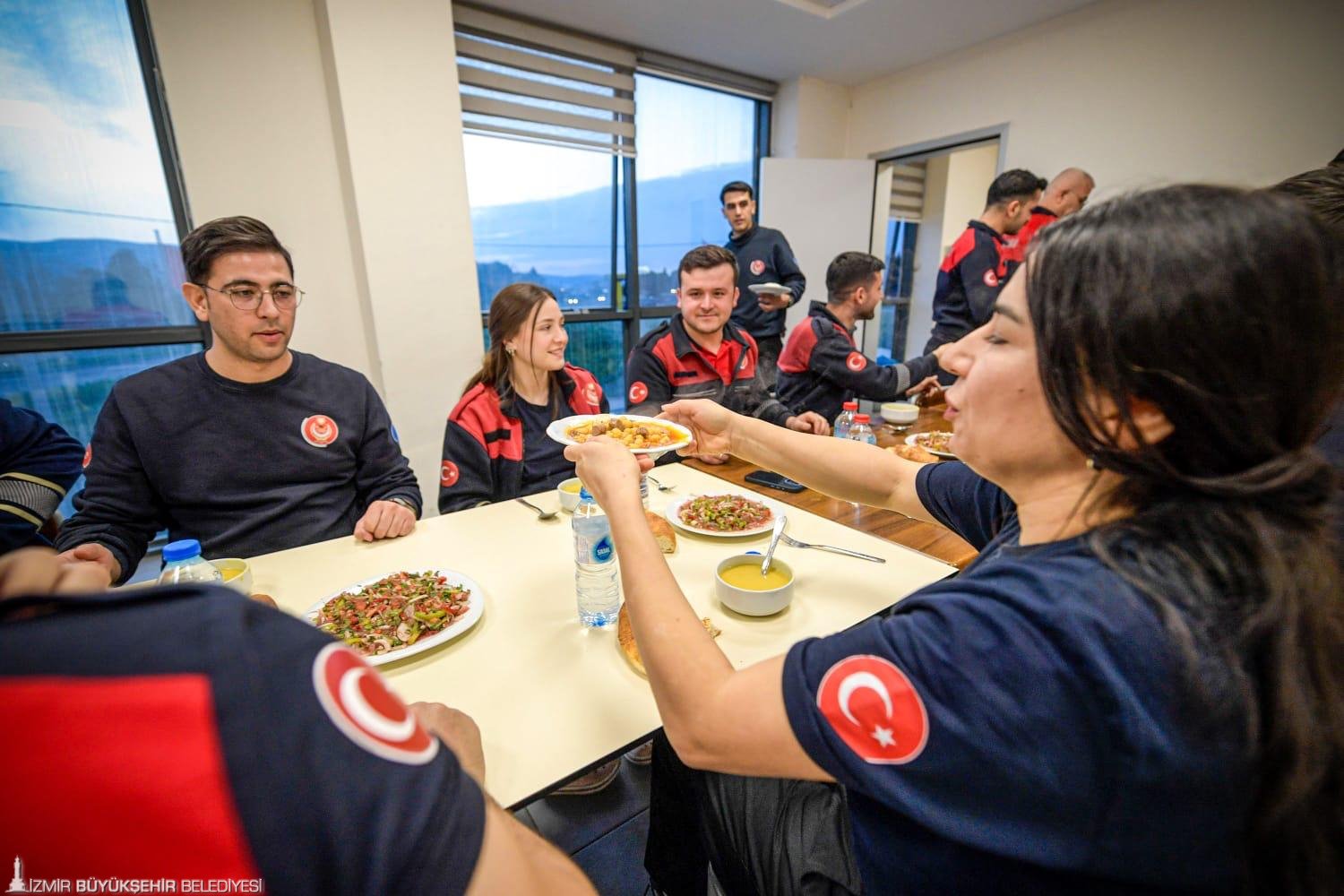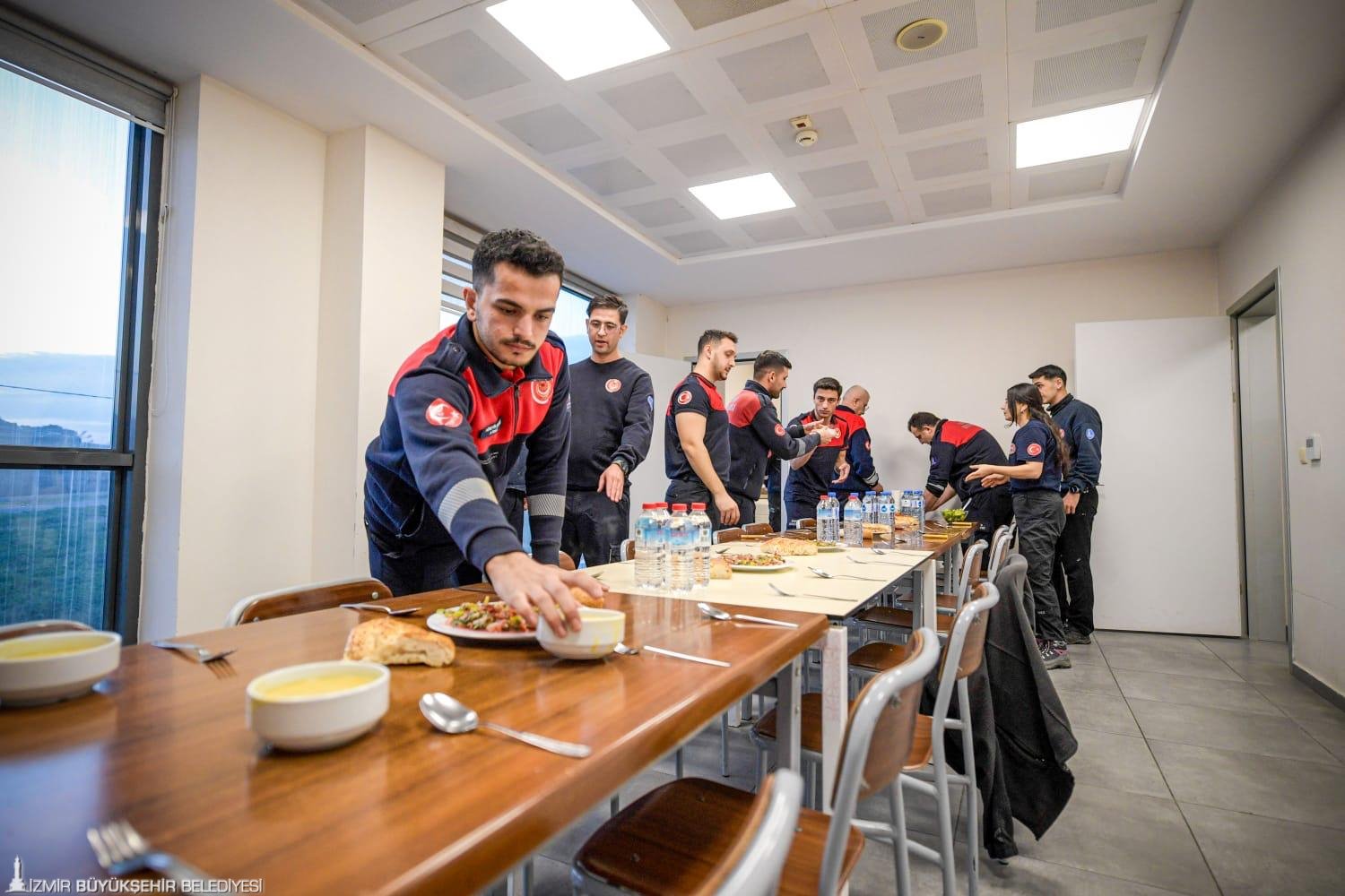 İzmir Büyükşehir Belediyesi İtfaiye Dairesi Başkanlığı personeli, ramazan ayında iftar sofralarını dayanışma ve ekip ruhuyla hazırlıyor. İmece usulü kurulan sofrada kimi çorba pişiriyor, kimi salata doğuruyor, kimi de pilav yapıyor. Ateş savaşçıları bir yandan yemeklerini hazırlarken bir yandan da olası ihbarlara karşı her an tetikte bekliyor. Tüm ekibin katkısı ile iftar için hazırlanan sofrada hep birlikte dualar okunduktan sonra oruçlar açılıyor.