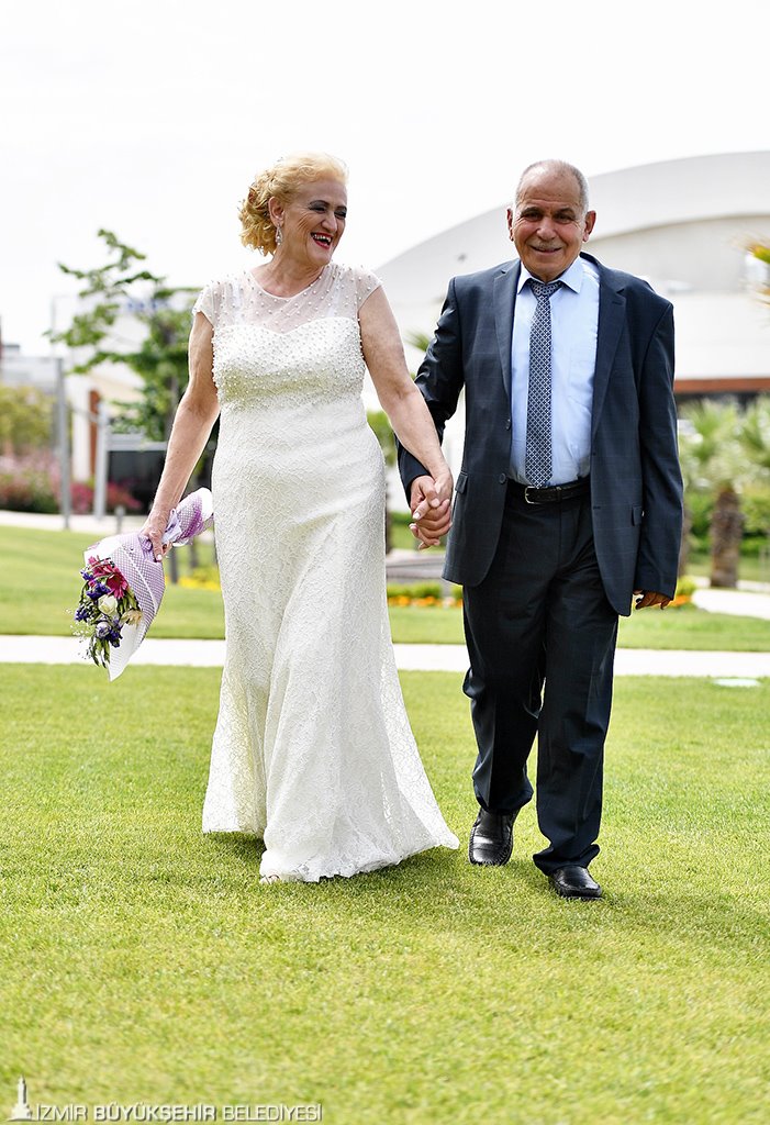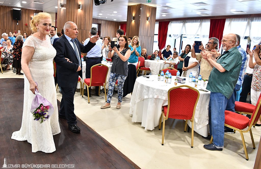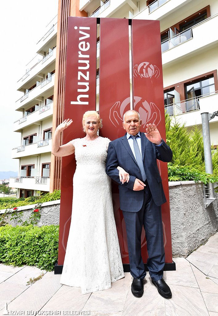 İzmir Büyükşehir Belediyesi'nin Buca'da kurduğu Türkiye'nin ilk sosyal yaşam kampüsünde "sıra dışı bir gün" yaşandı. Yıllardır Gürçeşme'de hizmet verdikten sonra Sosyal Yaşam Kampüsü'ndeki lüks otelleri aratmayan yeni binasına taşınan Huzurevi'nin sakinleri, burada tanışarak birbirini seven 69 yaşındaki Hasibe Önder ile 76 yaşındaki Nazmi Andaç’ın mutluluğuna tanık oldu. İzmir'de ikinci baharlarını yaşayan çiftin nikah töreni, Huzurevi'nde kalan yaşlılarla personele de kolay kolay unutamayacakları bir gün yaşattı.