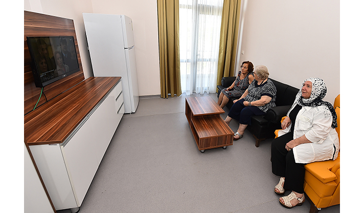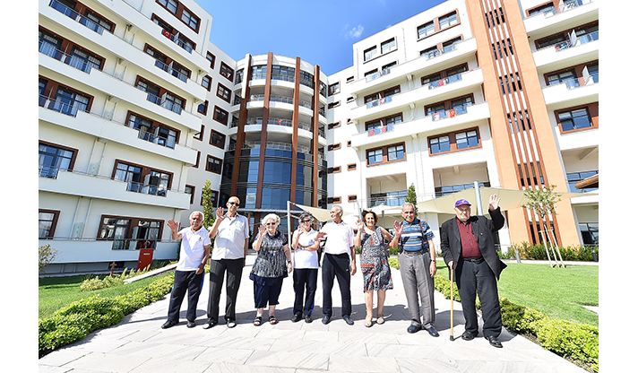 Gürçeşme Zübeyde Hanım Huzurevi'nden yeni yuvalarına taşınan İzmir Sosyal Yaşam Kampüsü’nün 234 sakini, şimdi rüya gibi bir mekanda hayatlarını dolu dolu yaşıyor. Her türlü konforun düşünüldüğü odalarında dinlenen, gün içinde sportif, sosyal ve kültürel faaliyetlere, gezilere katılan yaşlılar, yeni tesis için “burası huzurevi değil beş yıldızlı otel” benzetmesinde bulunuyor. Tesisin huzurevi bölümünde balo salonu, iki adet kafeterya ve yemek salonu, kütüphane, kuaför ve berber salonu, el işi salonu, terzi, televizyon ve oyun salonları bulunuyor. Kıyafetleri yıkanan ve ütülenen, diledikleri zaman kuaförde saçlarını yaptıran huzurevi sakinleri için aşevinde diyetlerine uygun olarak hazırlanan yemekler ikram ediliyor. Huzurevinde 3 doktor, 15 hemşire, psikolog, hasta bakıcı ve temizlik personeli başta olmak üzere 3 vardiya halinde 250 personel görev yapıyor.