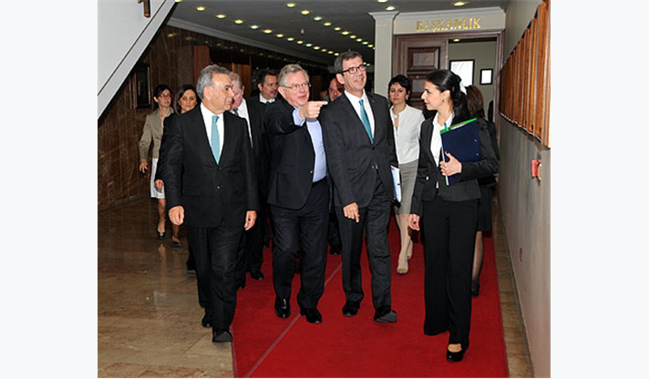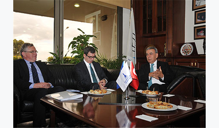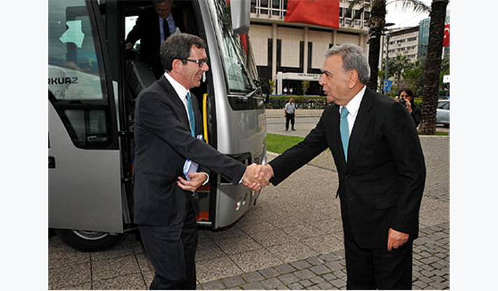 Ziyarette ağırlıklı olarak Türkiye ile Avrupa Birliği arasında süren müzakere süreci ve İzmir’in EXPO 2020 adaylığı konuşuldu. Başkanlığını Jean Maurice Ripert’ün yaptığı Avrupa Birliği (AB) Türkiye Delegasyonu heyetinde Letonya Büyükelçisi Aivars Vovers, Bulgaristan Büyükelçisi Krasimir Tulechki, Danimarka Büyükelçisi Ruben Madsen, Avusturya Büyükelçisi Klaus Wölfer, İrlanda Büyükelçisi Kenneth Thompson, Portekiz Büyükelçisi Jorge Cabral, Yunanistan Büyükelçiliği Maslahatgüzarı Haris Lalacos, Almanya Büyükelçiliğinden Elçi Pascal Hector, İsveç Büyükelçiliği Elçi Müsteşarı Anna Hammarlund-Blixst ve Fransa Büyükelçiliği 1. Müsteşar Bernard Chappedelaine yer aldı.