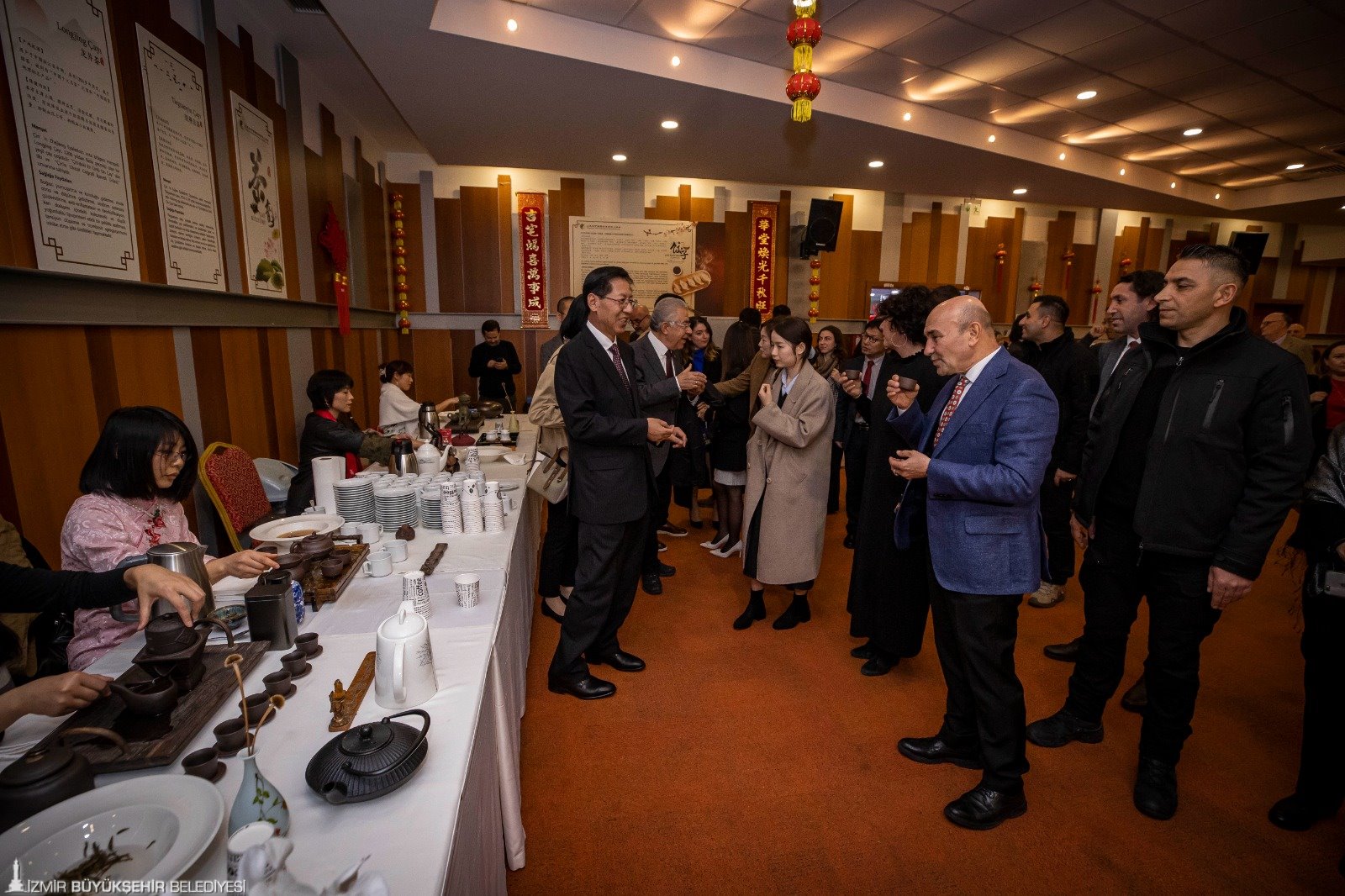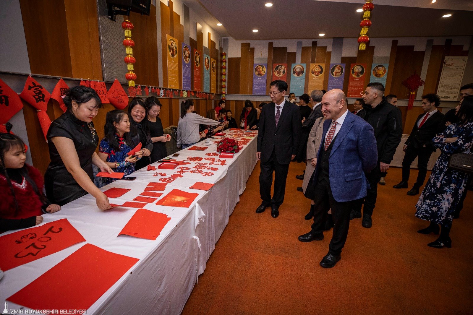 Başkan Tunç Soyer, Çin’in geleneksel halk danslarıyla karşılandı. Büyükelçi Shaobin ile Çin’in 2023 yılı anısına hazırladığı panoyu imzalayan Başkan Soyer, mutfaktan el sanatlarına Çin kültürünün sergilendiği stantları da gezdi.