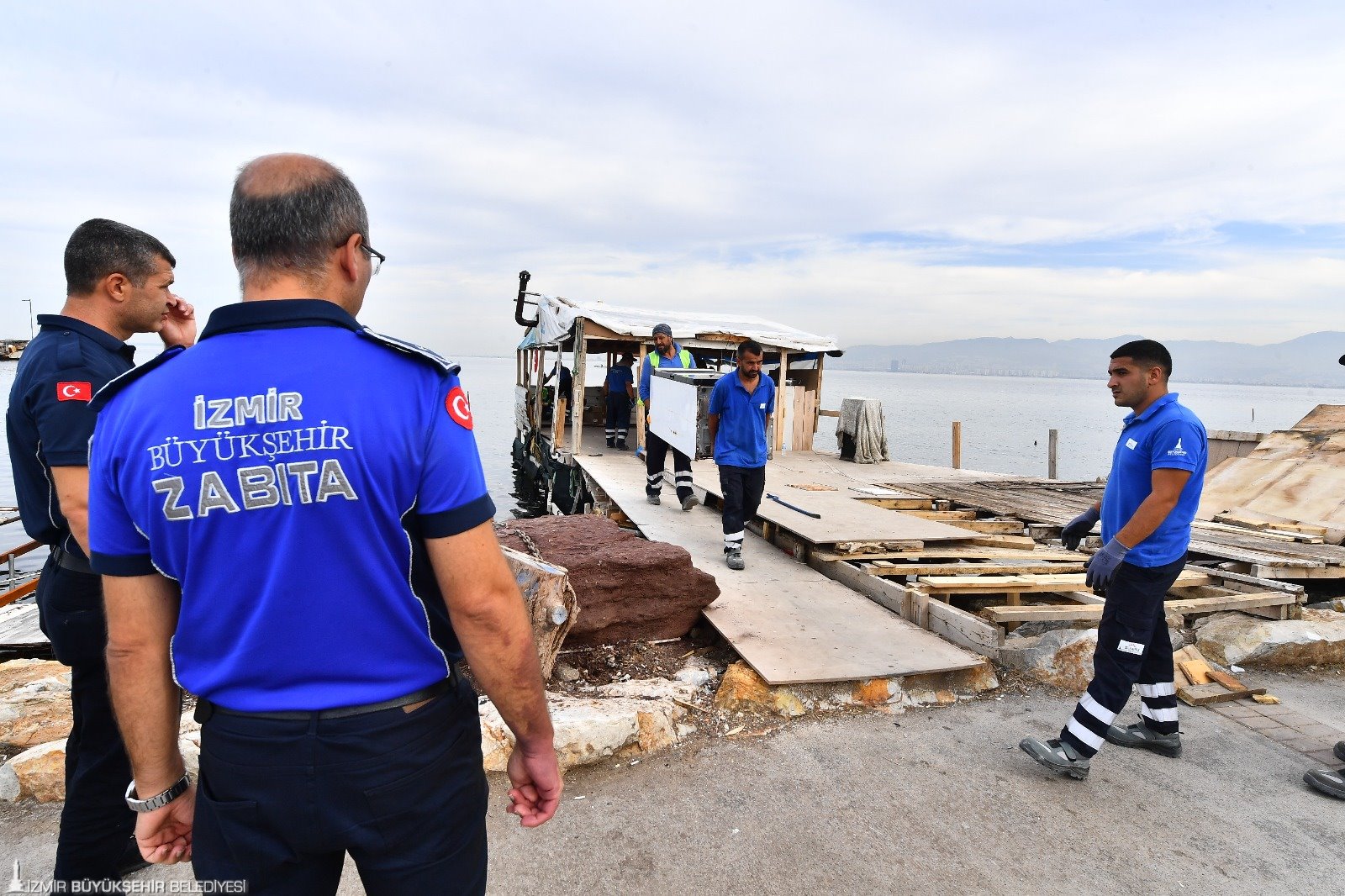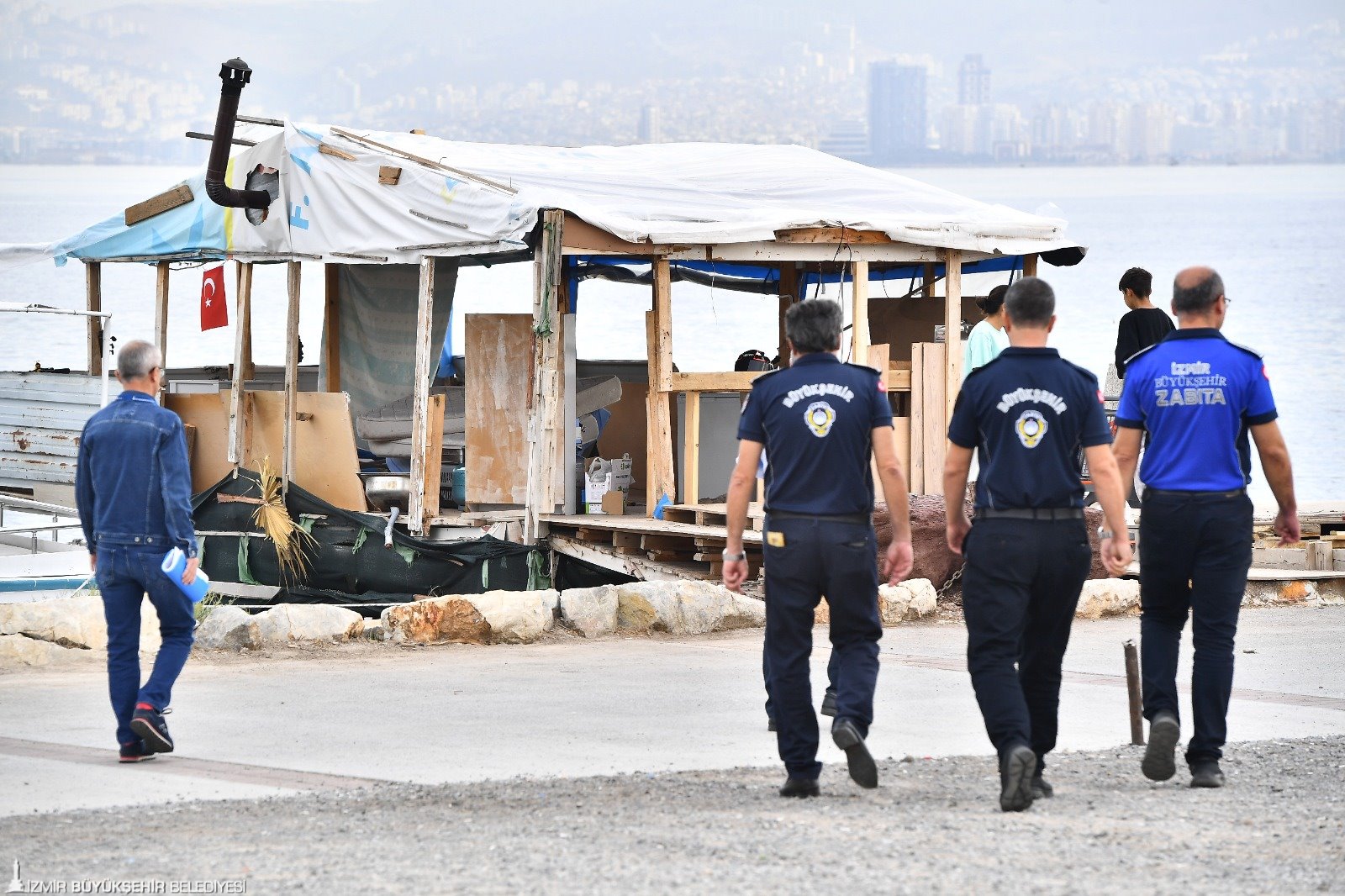 İzmir Büyükşehir Belediyesi Zabıta Dairesi Başkanlığı Çevre ve İmar Zabıtası Şube Müdürü Fuat Dönmez, çevre ve görüntü kirliliği oluşturan, aynı zamanda gıda satışı yapıldığı için hijyen sorunu da yaratan ahşap baraka, iskele, kulübe gibi izinsiz yapıları kaldırma konusunda kararlı olduklarını dile getirdi. Dönmez; “Hemşehri İletişim Merkezi (HİM) ile CİMER’e de halkımızdan bu yönde şikayetler geliyordu. Gerekli incelemeleri yaptıktan sonra bu izinsiz yapıların kaldırılması için duyuruları yaptık. Kaldırılması için belirli bir süre verdik. Bu sürenin sonunda da kaldırılmayan izinsiz yapıları kaldırıyoruz. Yarın çalışmalarımız tamamlanacak ve alanı temizleyeceğiz” dedi.