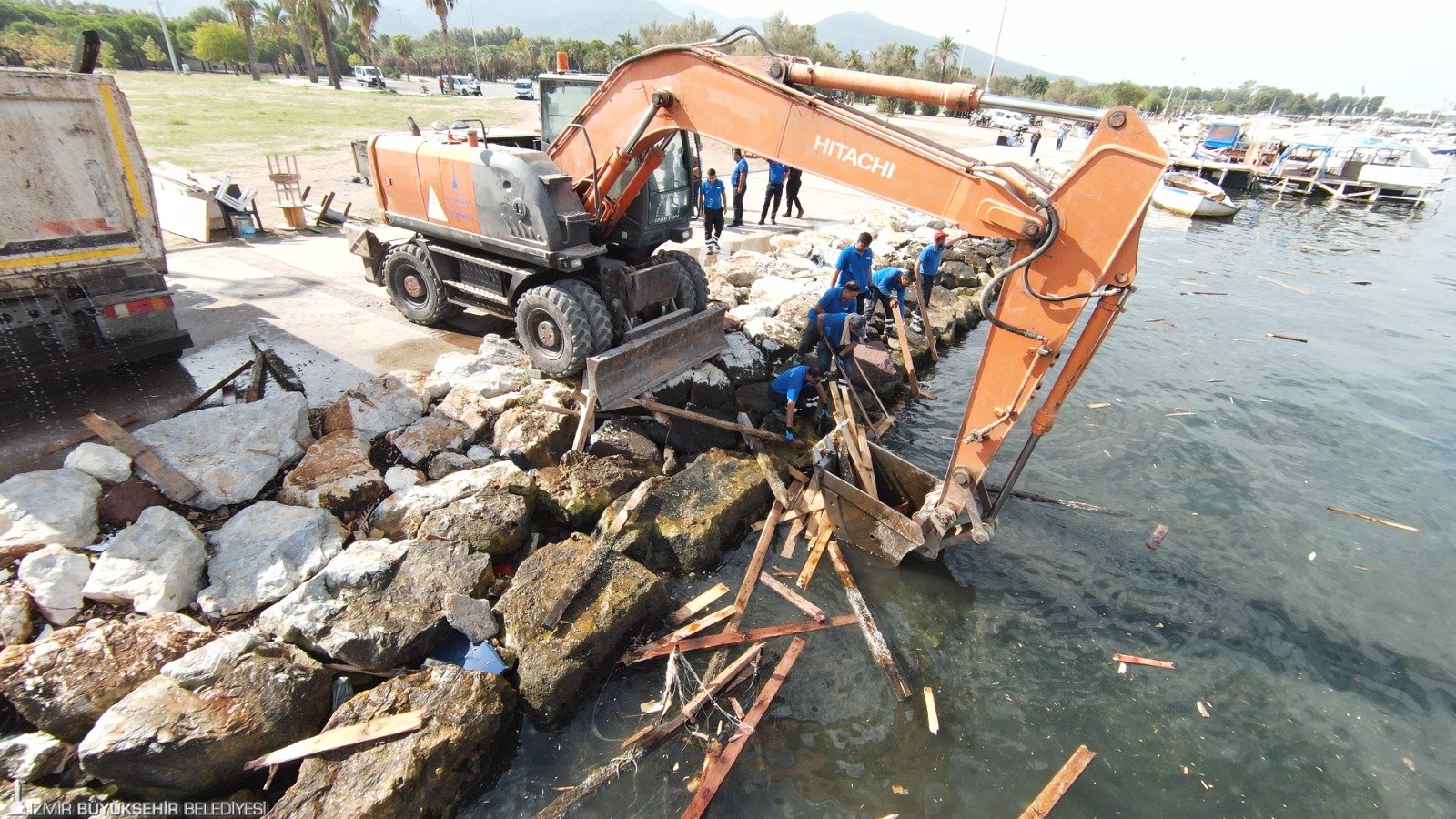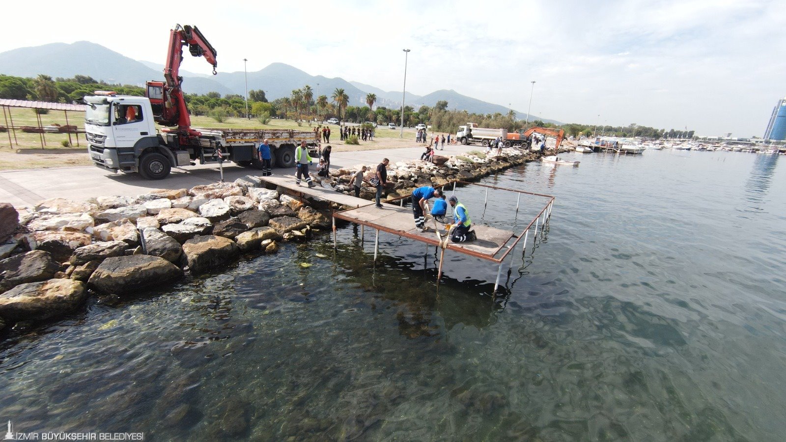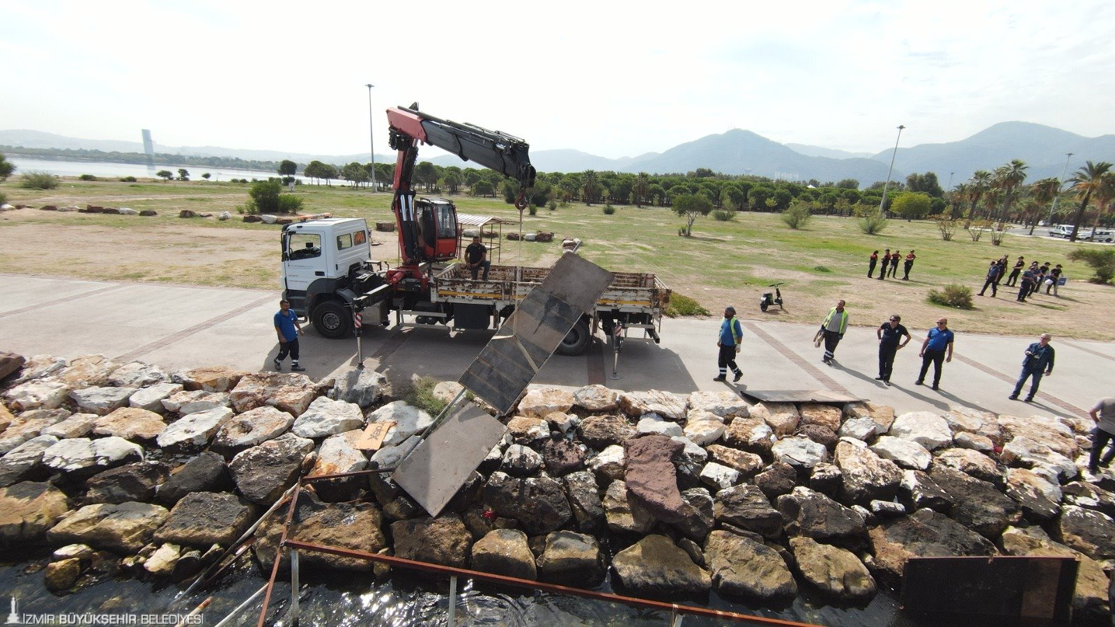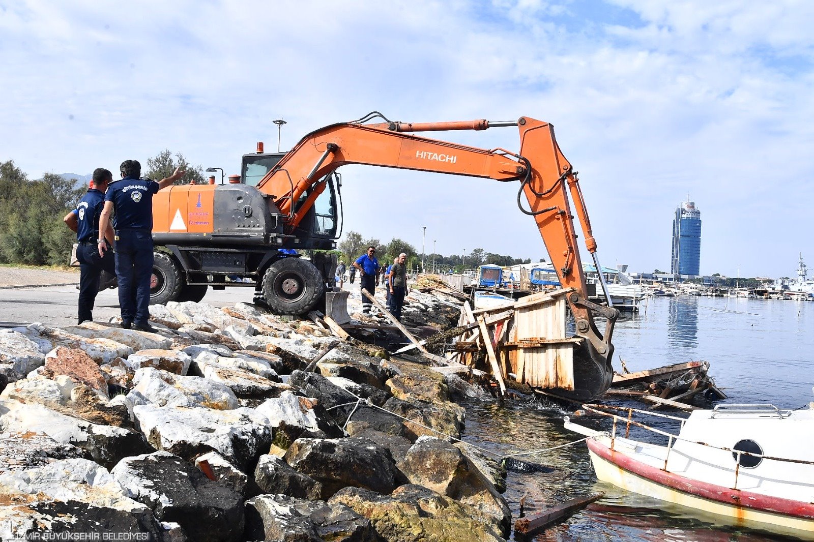 İzmir Emniyet Müdürlüğü ekiplerinin de destek verdiği çalışmada, kepçeler yapıları yıkarak denizden çıkardı. Toplanan atıklar belediye tarafından imha edilecek.