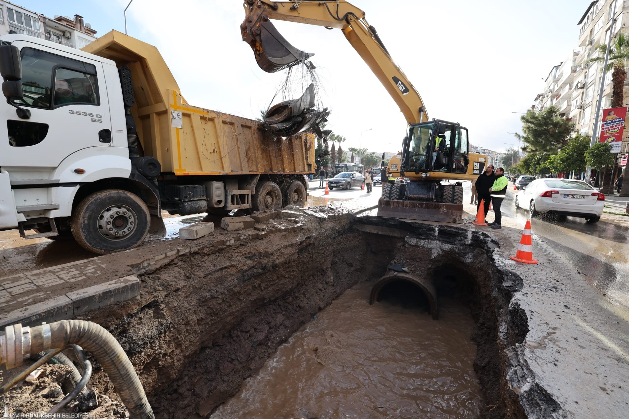 İzmir Büyükşehir Belediyesi İZSU Genel Müdürlüğü, Konak’ta İnönü Caddesi ile 200 Sokak kavşağında öğle saatlerinde meydana gelen ana isale hattı arızasına hızlı şekilde müdahale etti. Kentin içme suyu iletiminde kritik öneme sahip 1,4 metre çapındaki içme suyu beton borusunda oluşan arızanın, boru birleşim noktasından kaynaklandığı belirlendi. Arızanın giderilmesi ve olası daha büyük altyapı risklerinin önüne geçilmesi amacıyla hat kontrollü şekilde devre dışı bırakıldı.
