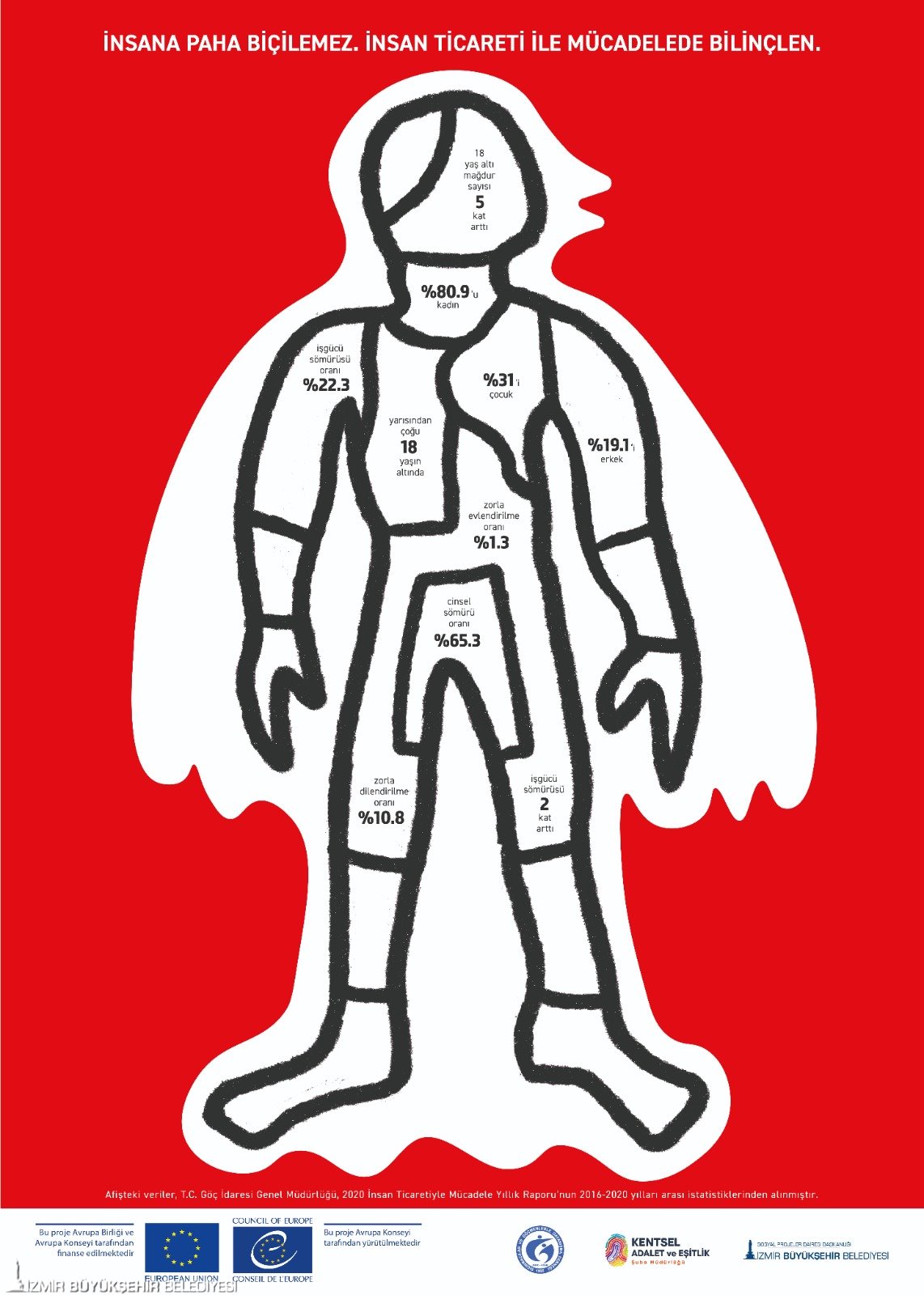 İzmir Büyükşehir Belediyesi’nin göçmenlerin, kadınların, çocukların ve diğer hassas grupların maruz kaldığı işgücü sömürüsü ve insan ticareti konusunda farkındalık yaratmak amacıyla düzenlediği ulusal afiş yarışmasının kazananları belli oldu. “İnsan Ticareti ile Mücadele Adına Ses Ol” adıyla yapılan yarışmanın birincisi Taha Bekir Murat olurken, ikincilik ödülünü Umut Altıntaş, üçüncülük ödülünü ise Aygen İncel aldı. Aslı Yıldız’ın tasarımı ise mansiyon ödülüne layık görüldü.