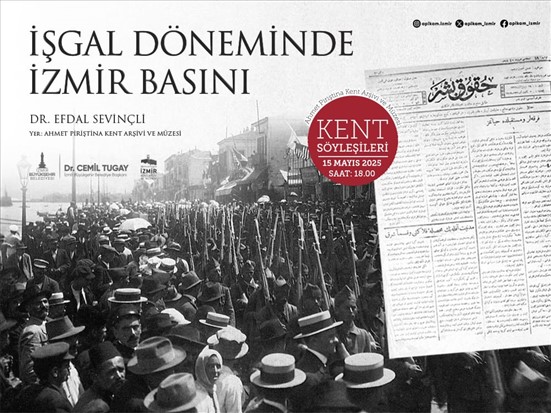 İzmir Büyükşehir Belediyesi APİKAM tarafından gerçekleştirilen Kent Söyleşileri, “İşgal Döneminde İzmir Basını” söyleşisiyle devam ediyor. 15 Mayıs 1919’da Yunanistan ordusunun İzmir’e çıkmasıyla başlayan ve 9 Eylül 1922’de Türk ordusunun kenti geri almasıyla son bulan işgal yıllarında İzmir basınının durumunu konu alacak söyleşi, 15 Mayıs Perşembe günü 18.00-19.30 saatleri arasında düzenlenecek. Ahmet Piriştina Kent Arşivi ve Müzesi bahçesinde gerçekleştirilecek söyleşinin konuğu İzmir kent tarihi, kültür ve sanat hayatı alanında çalışmaları bulunan Dr. Efdal Sevinçli olacak.