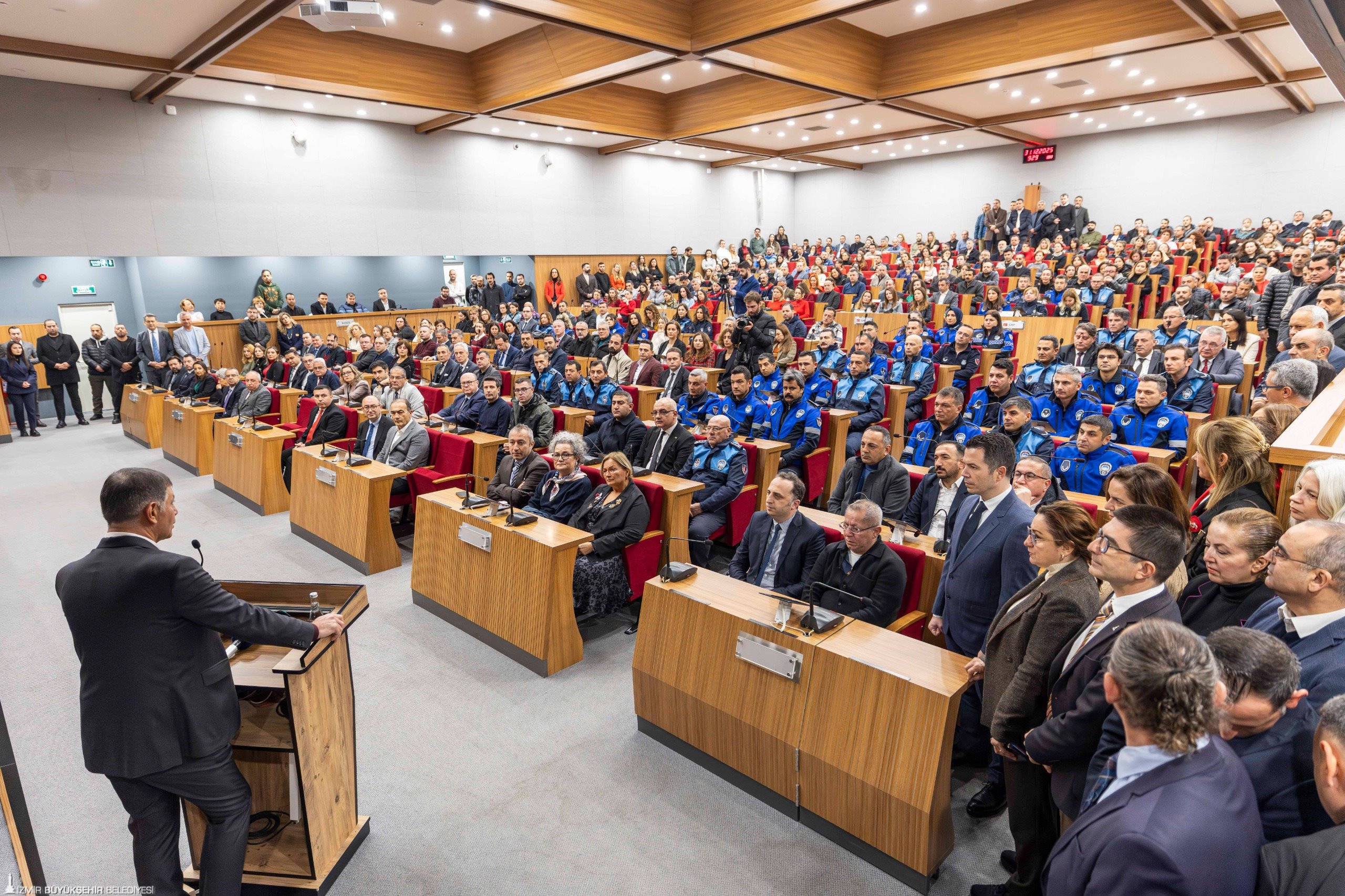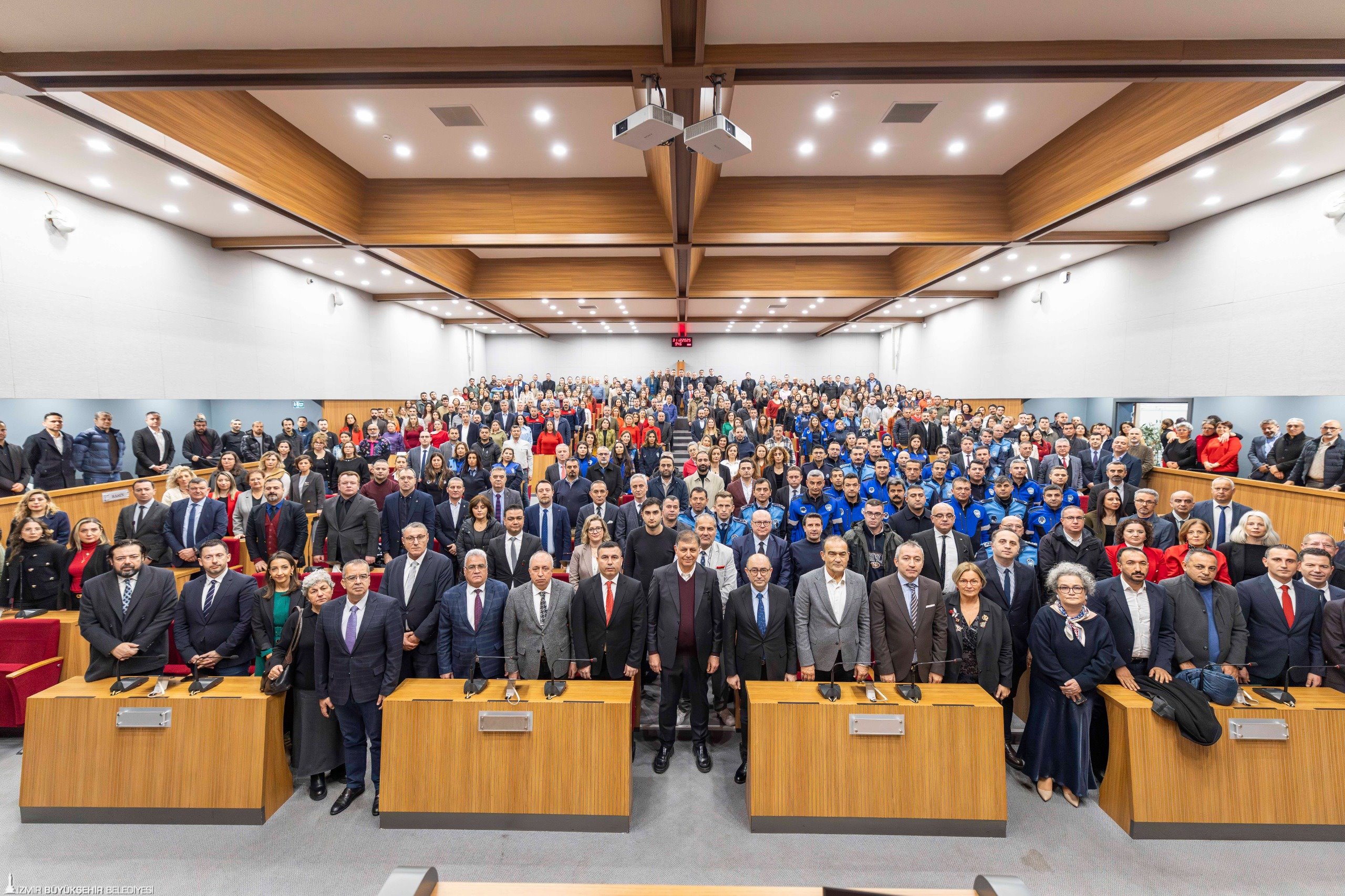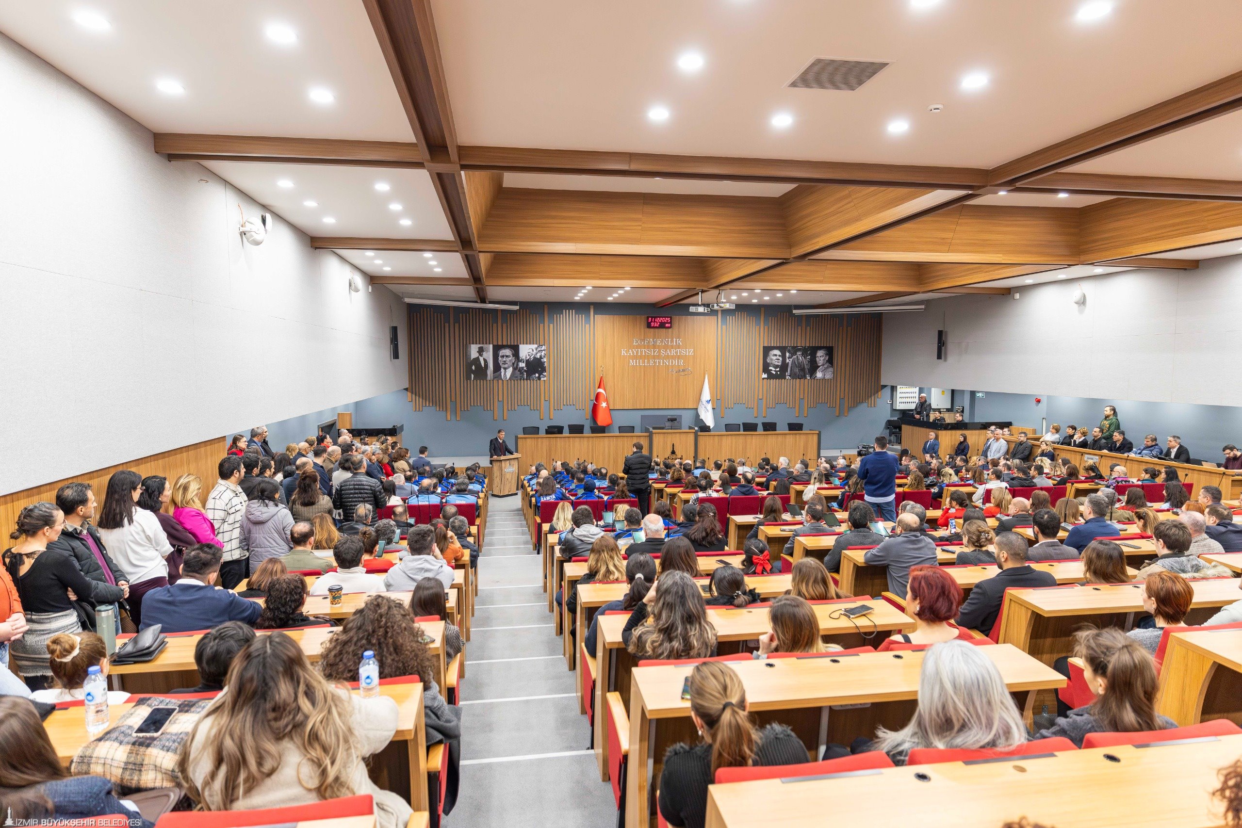 İzmir Büyükşehir Belediye Başkanı Dr. Cemil Tugay, yılın son iş gününde belediye personeliyle bir araya geldi. Kültürpark’taki İzmir Büyükşehir Belediyesi Meclis Toplantı Salonu’nda gerçekleşen buluşmaya yoğun bir katılım vardı. Büyükşehir Belediye Başkanı Dr. Tugay, kentte gerçekleştirilen hizmetler için İzmir halkı adına belediye üst yönetimine ve tüm personele teşekkür etti.