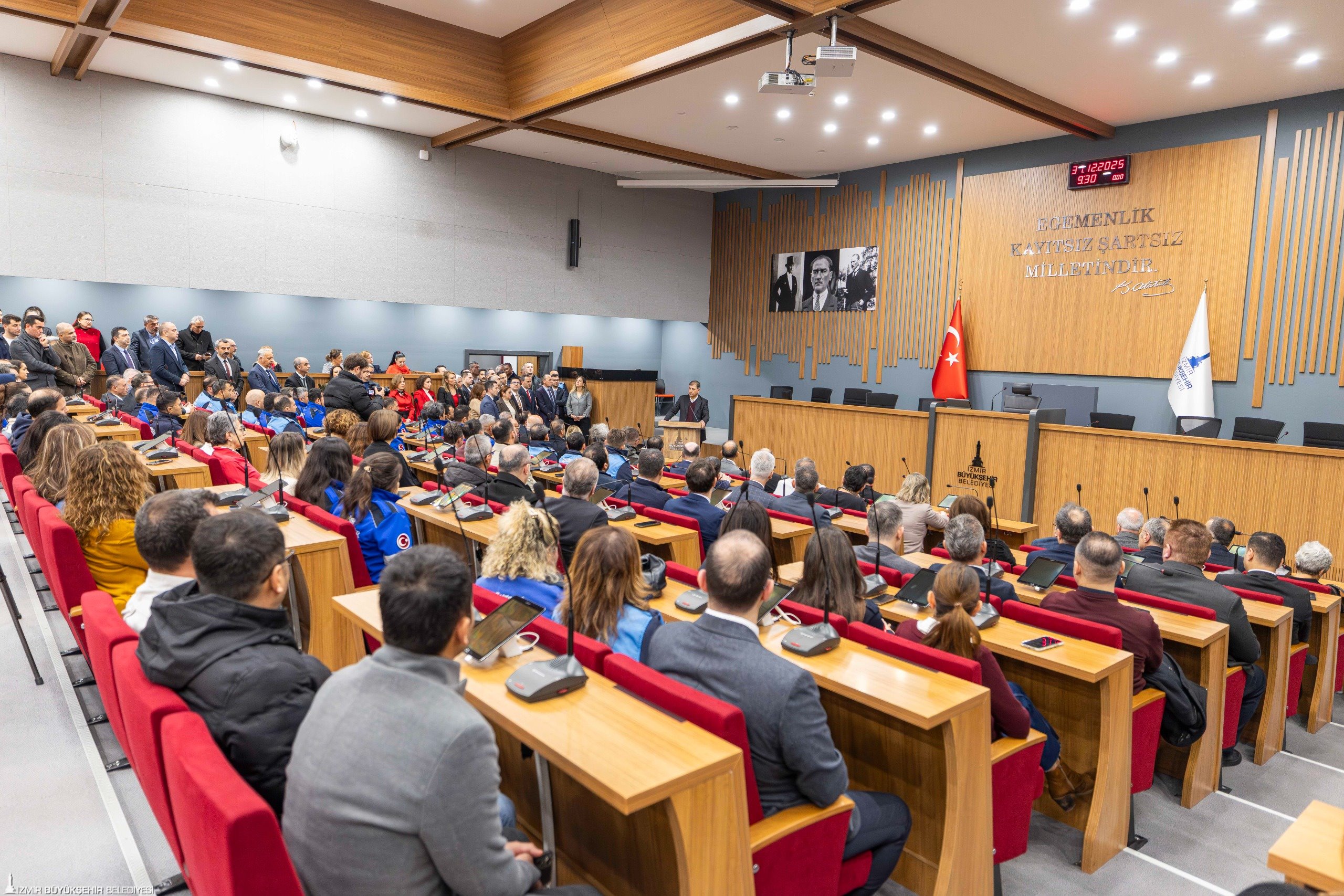 “Sabah bir çalışma arkadaşımıza, ‘2026 nasıl olacak’ diye sordum; ‘Bizim elimizde başkanım.’ dedi. Gerçekten yaşayacaklarımızın ne kadarının bizim elimizde olduğunu, nelerin ise bizim gayretimize bağlı olduğunu düşünme zamanıdır. Bir şeyleri değiştirme gücüne sahip olduğumuza inanırsak emin olun bir şeyler değişecek. Bunları sadece çalışma arkadaşlarımızdan ve bu kurumun çatısı altında olmaktan aldığımız güçle başaracağız. Daha fazla çalışan, daha az hata yapan bir belediye başkanı olmak için elimden geleni yapacağım. Biz bu yola baş koyduk ama tüm çalışan arkadaşlarımıza ihtiyacımız var; bu dev kurumun her bir bireyine ihtiyacımız var. Biliyorum çok yoruluyorsunuz, zor şartlarda çalışıyorsunuz ve büyük emeğiniz var; hakkınız ödenmez. Hem kendi adıma hem de temsil ettiğim İzmir halkı adına sizlere yürekten teşekkür ediyorum. Yaptığınız tüm çalışmalar, mutlu ettiğiniz insanlar ve çözdüğünüz sorunlar için; bu şehrin istismar edilmesini önlediğiniz, çiçek açan her bitkide ve ağaçta emeğiniz olduğu, yüzünü güldürdüğünüz tüm yurttaşlar için hepinize şükranlarımı sunuyorum. Yeni yılınız kutlu olsun, her şey gönlünüzce yaşansın. Her birinizin iyiliği, hepimizin iyiliğidir. Ailelerinize ve özellikle çocuklarınıza sevgilerimizi iletin, her birinin yeni yılını kutladığımı söyleyin. İnşallah önümüzdeki yıl hepimizin daha mutlu olduğu bir yıl olur.”