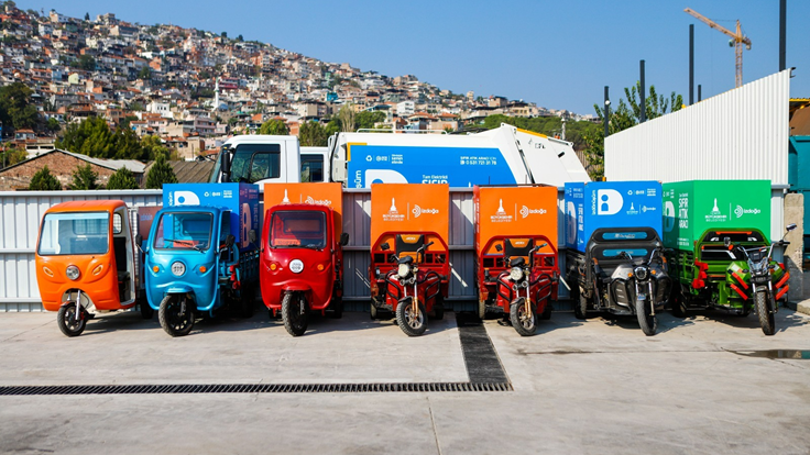 Elektrikli motosikletler ise hidrolik sıkıştırmalı kamyonların giremediği dar sokaklara ulaşımı sağlıyor ve konutlardan hızlı şekilde atık toplama işlemi yapılıyor. Tek şarjda 50 kilometreye kadar gidebilen elektrikli motosikletler ile ambalaj atıkları sıfır noktasında toplanıp geri dönüşüme iletiliyor.