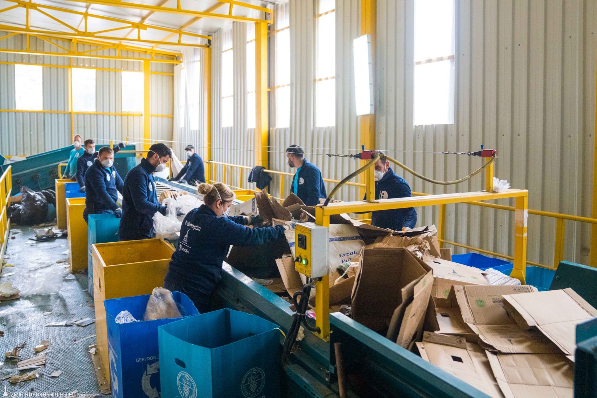 İzDönüşüm projesi kapsamında atıklar, sokaklardaki İzDönüşüm kutularından ve alışveriş merkezi, fabrika, hastane gibi yoğun nüfuslu alanlara yerleştirilen konteynerlerden toplanıyor. Kamyon ve elektrikli motosikletlerle toplanan atıklar, Konak’taki ambalaj atığı toplama ve ayrıştırma merkezine getiriliyor.