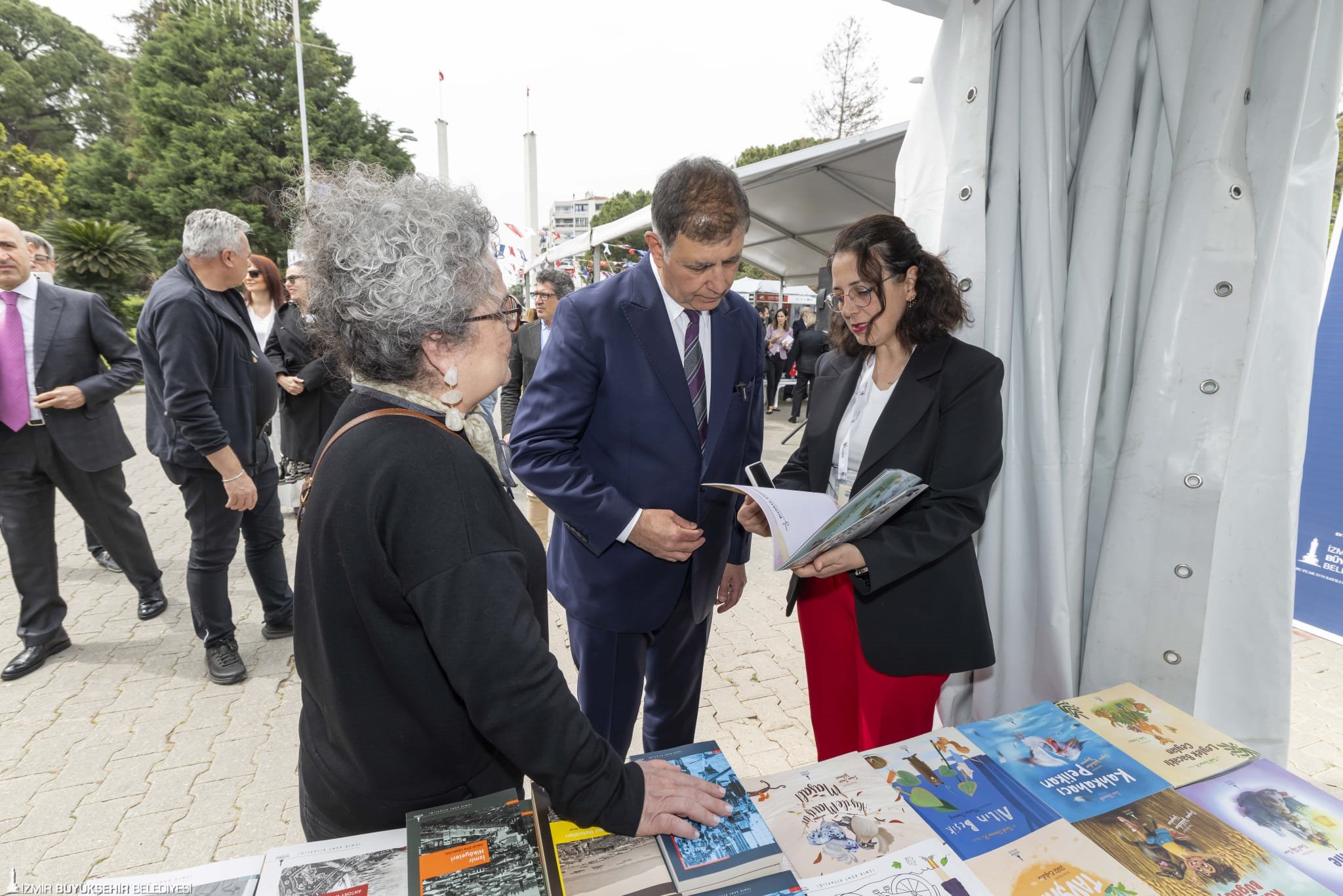 Açılış konuşmalarının ardından Başkan Tugay, onur konuğu yazar Oya Baydar ve fuar katılımcıları ile açılış kurdelesini kesti. Başkan Tugay daha sonra fuar alanında yer alan stantları gezerek kitapseverler, yazarlar ve yayınevleri yöneticileriyle sohbet etti. Başkan Tugay, fuarı gezen gençler ve çocuklarla hatıra fotoğrafı da çektirdi.