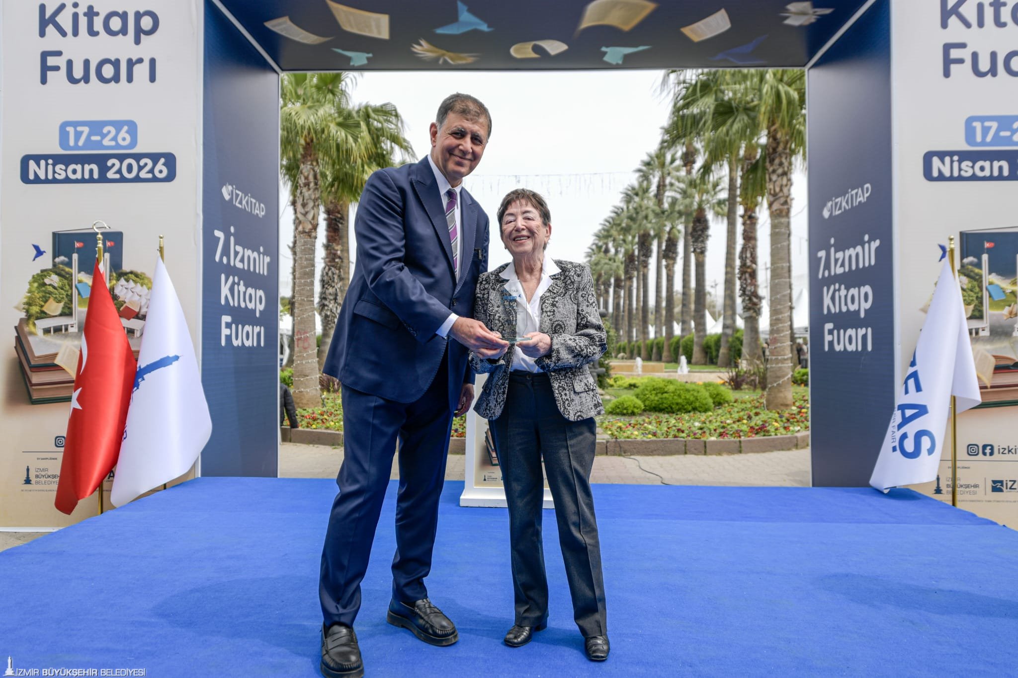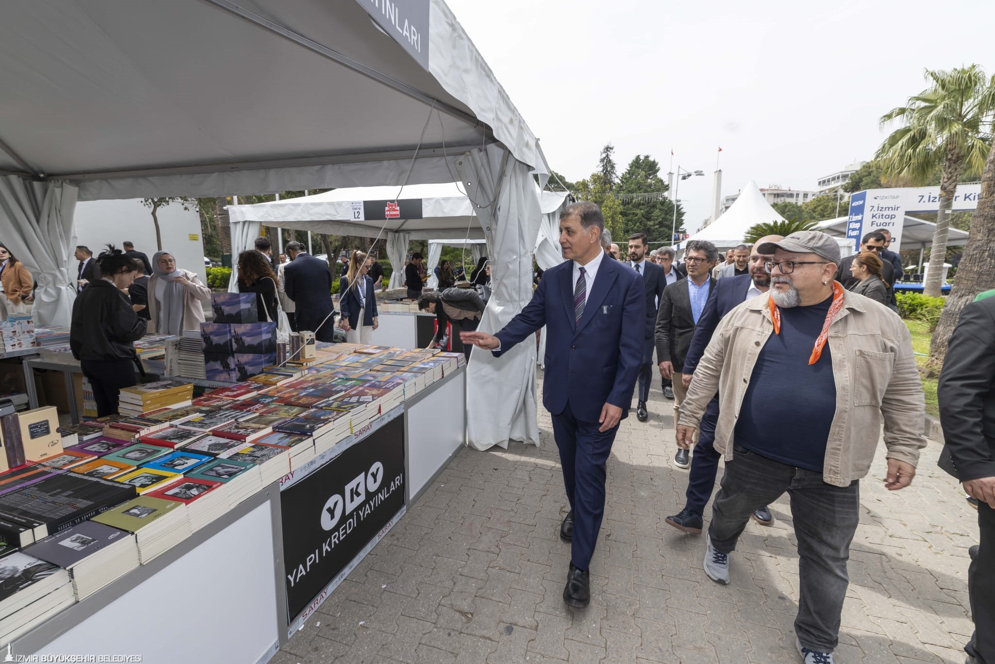 İzmir Büyükşehir Belediyesi’nin ev sahipliğinde İZFAŞ ve TACT Fuarcılık iş birliğiyle düzenlenen İZKİTAP-7. Izmir Kitap Fuarı başladı. 26 Nisan’a kadar Kültürpark’ta gerçekleştirilecek fuarın açılış törenine İzmir Büyükşehir Belediye Başkanı Dr. Cemil Tugay, fuarın onur konuğu yazarı Oya Baydar, İYİ Parti İzmir Milletvekili Hüsmen Kırkpınar, mesek odaları, sivil toplum kuruluşları ve yayınevlerinin temsilcileri, yazarlar, şairler, akademisyenler, gazeteciler, sanatçılar ve kitapseverler katıldı. Bu yıl fuarda, yaklaşık 200 katılımcı yer alırken 400’e yakın yazar, şair, gazeteci, akademisyen ve sanatçı okurlarla buluşacak. Program kapsamında söyleşi ve imza günleriyle birlikte 500’e yakın etkinlik yapılacak. İZKİTAP’ın onur konuğu, çağdaş Türk edebiyatının önemli isimlerinden Oya Baydar, 18 Nisan günü imza ve söyleşisi ile Ahşap Sahne’de okurlarıyla buluşacak.