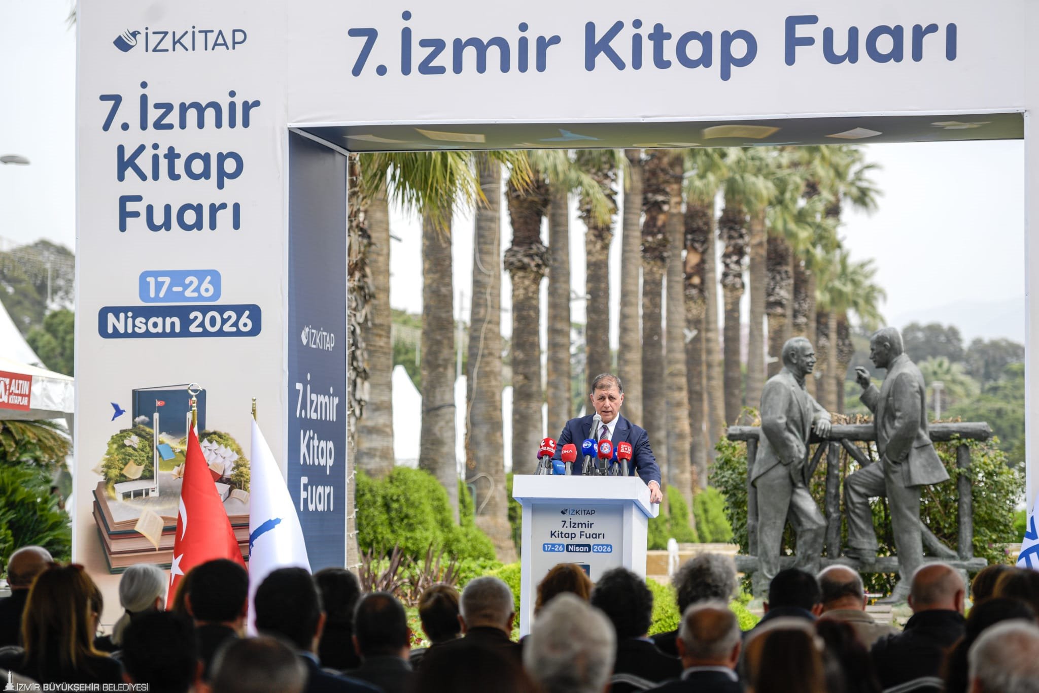 Törenin açılış konuşmasını yapan Başkan Tugay, baharı kitapla karşılamanın kendileri için büyük bir keyif olduğunu belirterek, “Bu keyfi paylaştığınız için hepinize teşekkür ediyorum. Kültürpark, yanmış ve yıkılmış bir alandan yeşil bir alana dönüştürülürken, dönemin belediye başkanı Behçet Uz ve arkadaşları buraya ‘Kültürpark’ adını vermek istemiş. Çünkü bu alanın, kentin yaşayanlarına, özellikle de İzmir’in gençlerine kültürel zenginlik katan ve onları geliştiren bir yer olmasını hayal etmişler. Biz de bu ruha uygun çalışmaları bir süredir sakin ve kararlı bir şekilde sürdürüyoruz. Kültürpark’ta kültür ve sanat faaliyetlerinin artması için çaba gösteriyoruz. Bu doğrultuda park içinde yeni müzeler ve sergi alanları oluşturuldu. Artık Hasan Âli Yücel Kütüphanesi ve İlber Ortaylı Kütüphanesi de var. Her geçen gün yenileri eklenmeye devam edecek. İsmet İnönü Sanat Merkezi’nde İzmir Büyükşehir Belediyesi Şehir Tiyatroları hemen her akşam oyunlarını sahneliyor. Düzenlediğimiz etkinlikler de kentimizin kültür ve sanat yaşamına önemli katkılar sağlıyor” dedi.