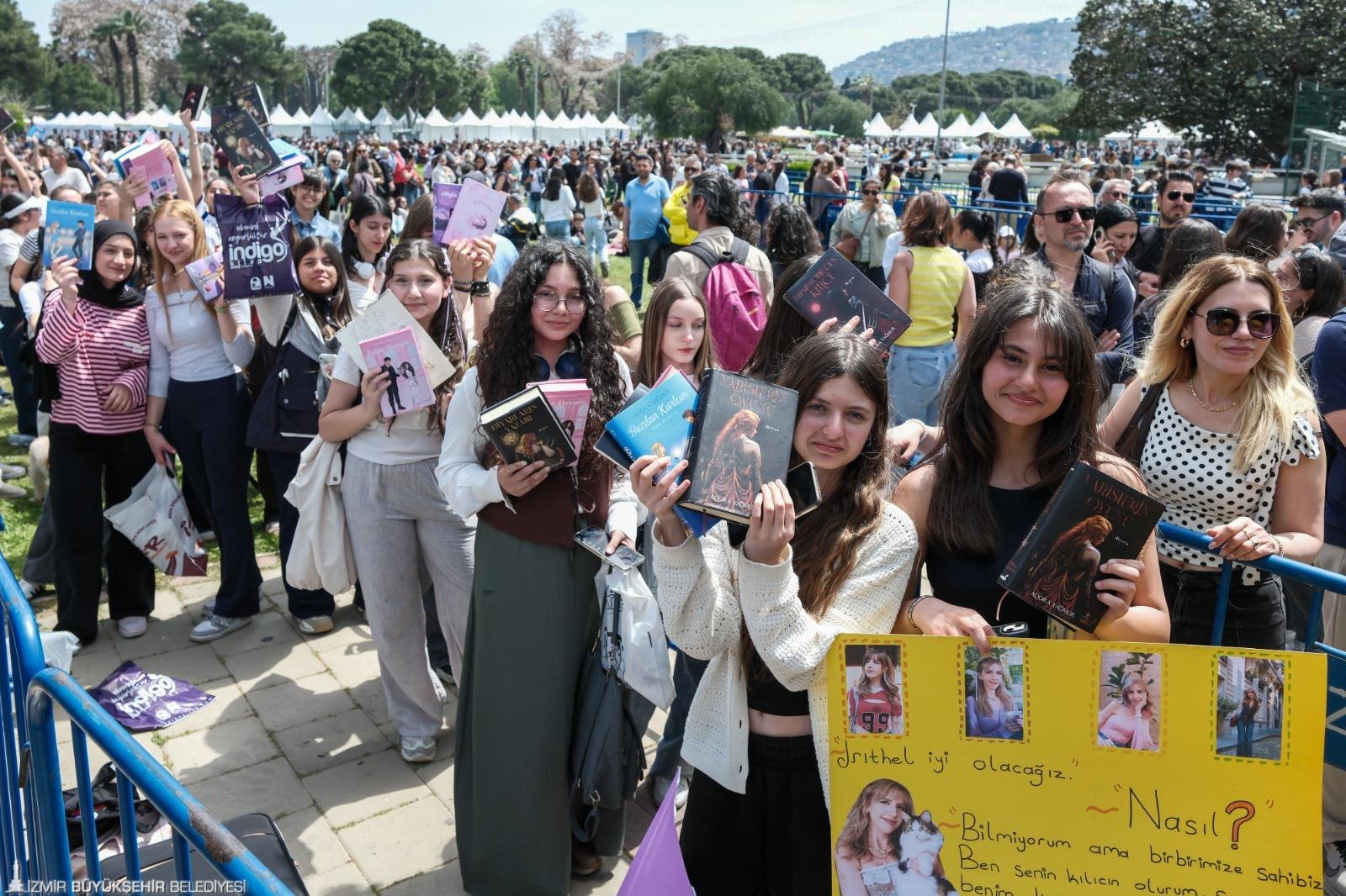 İzmir Büyükşehir Belediyesi’nin ev sahipliğinde, İZFAŞ ve TACT Fuarcılık iş birliğiyle Kültürpark’ta düzenlenen İZKİTAP - 7. İzmir Kitap Fuarı, hafta sonunda da bahar havası eşliğinde adeta festival atmosferinde geçti. İzmirliler, Kültürpark’ın eşsiz atmosferinde, gün boyunca söyleşilerde yazar ve şairlerle bir araya gelirken, imza etkinliklerinde uzun kuyruklar oluşturdu.