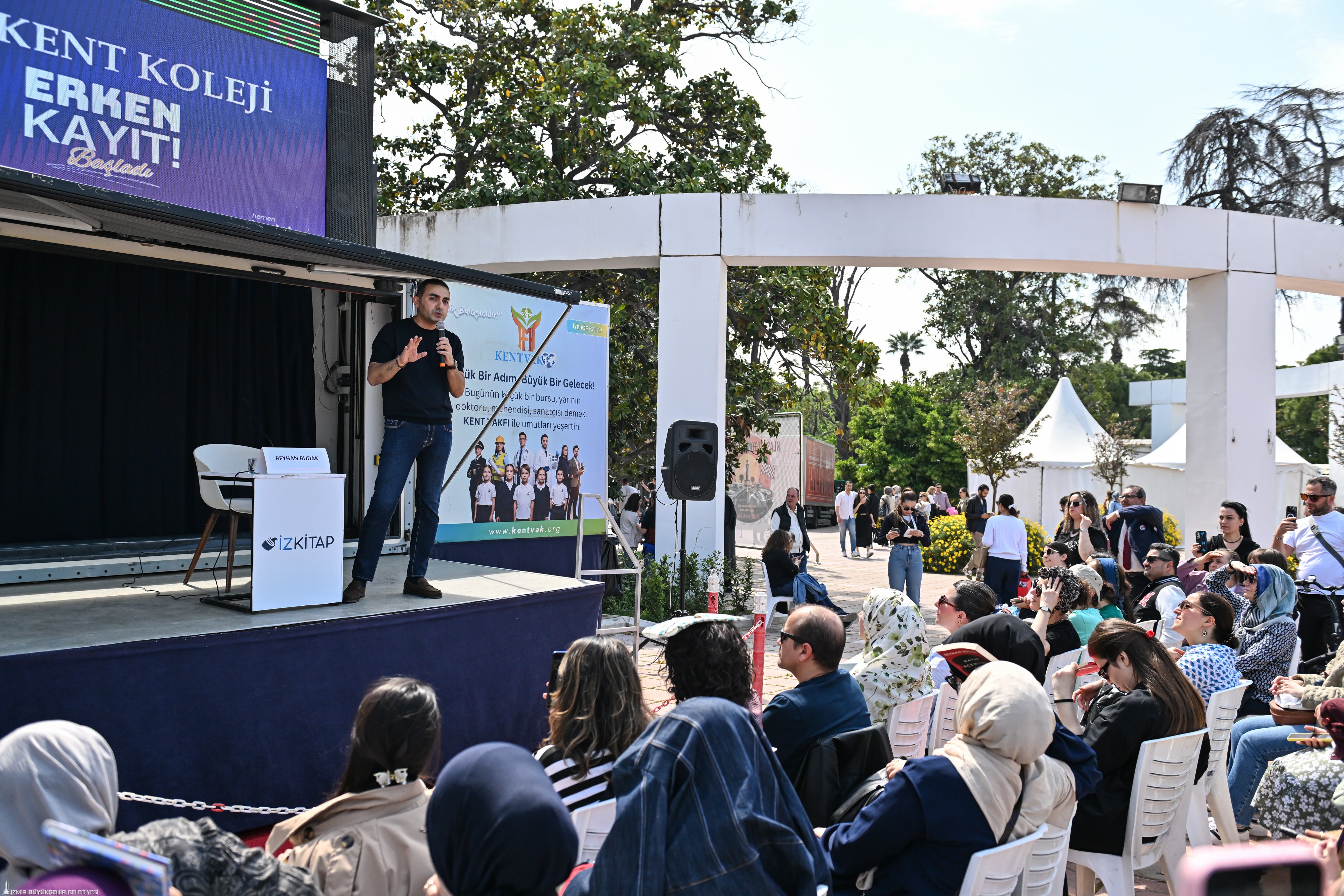 İZKİTAP’ta 25 Nisan’da Behiç Ak, Beyhan Budak, Cihat E. Çiçek, Doğu Yücel, Mavisel Yener, Mehmet Eroğlu, Mine Söğüt, Murat Menteş, Mustafa Balbay, Saygı Öztürk, Sinan Meydan, Şükrü Erbaş ve Yekta Kopan’ın da aralarında bulunduğu birbirinden değerli yazar, şair ve gazeteci İzmirlilerle bir araya geldi. Fuar kapsamında Gazeteci - Yazar Murat Ağırel, Tarihçi - Yazar Sinan Meydan, Klinik Psikolog Yazar Beyhan Budak ve Yazar Dr. Efdal Sevinçli söyleşilerde okurlarla buluşan isimler arasında yer aldı.