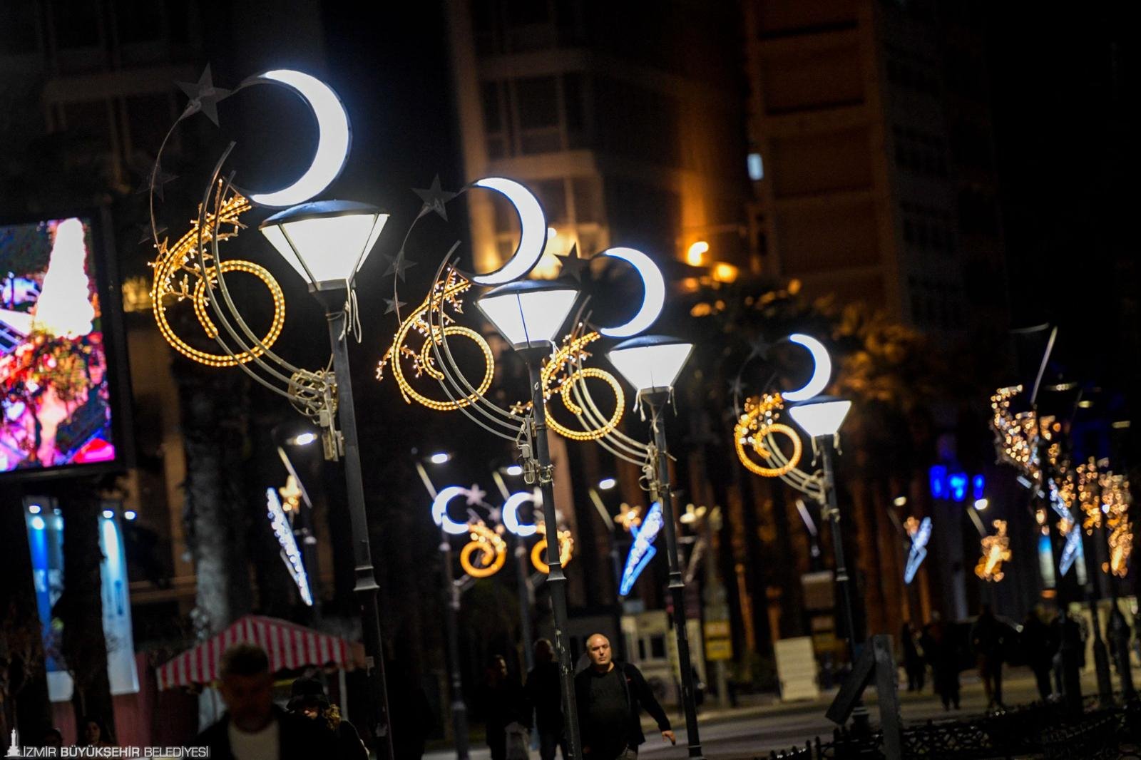 İzmir Büyükşehir Belediyesi, 2026’ya sayılı günler kala kent merkezindeki cadde, sokak ve meydanları rengarenk ışıklarla donattı.
