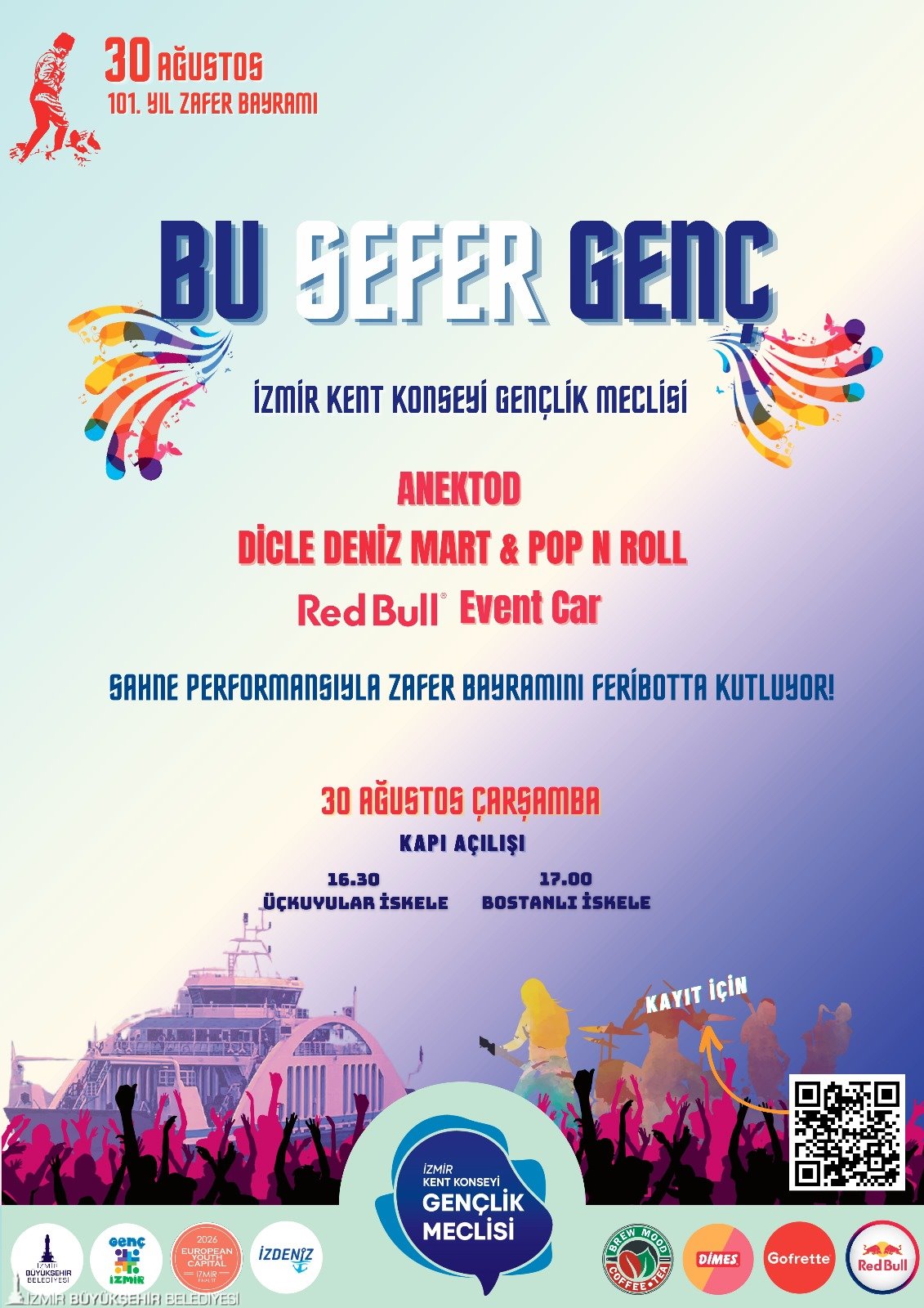 Genç İzmir ve İzmir Kent Konseyi Gençlik Meclisi işbirliğiyle 30 Ağustos Çarşamba günü ise feribotta “Bu Sefer Genç” buluşması var. Saat 16.30'da Üçkuyular Vapur İskelesi'nde, 17.00'de ise Bostanlı İskele'den programa dahil olmak mümkün. Anektod, Dicle Deniz Mart ve Pop N Roll sahne performansı gençleri bekliyor olacak.