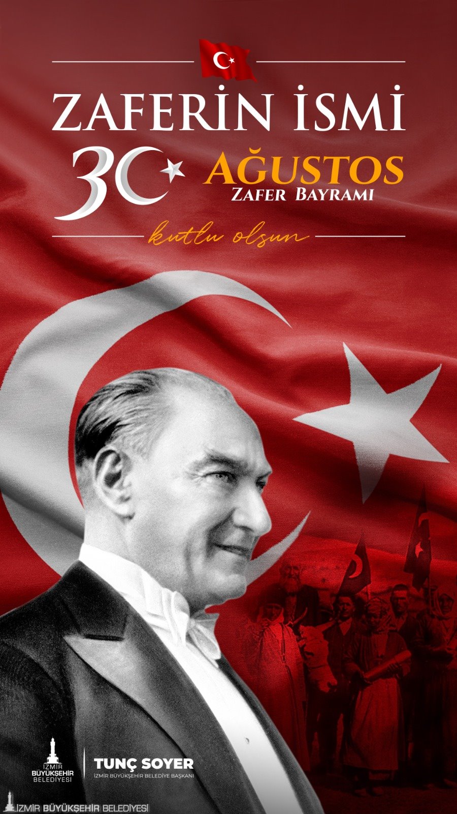İzmir Büyükşehir Belediyesi, 30 Ağustos Zafer Bayramı’nın 101’inci yıldönümünü bir dizi etkinlikle kutluyor. Kutlamaların ilk adresi Cumhuriyet Meydanı olacak. Sabah 09.25’te çelenk koyma etkinliğiyle başlayacak program 10.05’te İzmir Valisi Süleyman Elban’ın makamında kutlamaları kabul etmesi ile devam edecek. Cumhuriyet Meydanı’ndaki kutlamamalar 10.40’ta başlayacak. Vali Dr. Süleyman Elban, Ege Ordusu ve Garnizon Komutanı Korgeneral Kemal Yeni ve İzmir Büyükşehir Belediye Başkanı Tunç Soyer törene katılan İzmirlilerin bayramını kutlayacak. İstiklal Marşı’nın okunması, günün anlam ve önemini belirten konuşmaların ardından 11.15’te geçit töreni başlayacak.