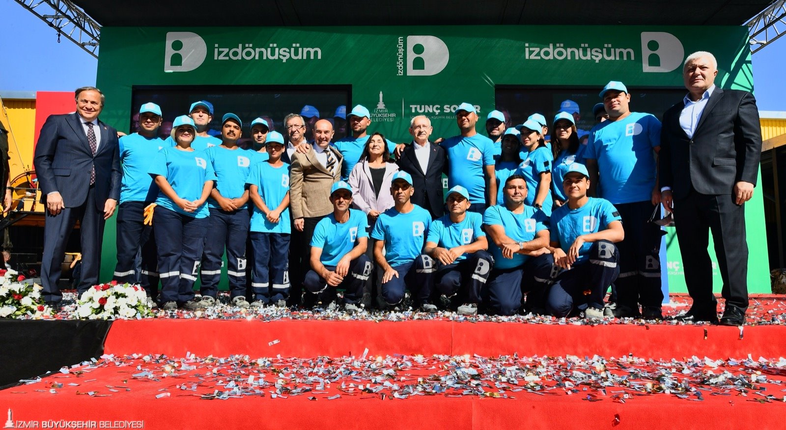 Uyum içinde yaşam kurmak istediklerini ifade eden Başkanı Tunç Soyer ise “Biz İzmir’i, doğanın döngülerinden koparılmış bir beton yığını değil, ekosistemin bir parçası olarak büyütüyoruz. Yeşil koridorlarla doğanın kente, kentlinin de doğaya nüfuz edebildiği, afetlere karşı dirençli ve belki de en önemlisi atık yönetimi planlanmış bir şehir için çalışıyoruz. Bugün açılışını gerçekleştirdiğimiz İzDönüşüm Ambalaj Atığı Toplama ve Ayrıştırma Tesisi işte bu doğrultuda attığımız çok önemli bir adım. Bu açılış, doğayla uyumlu, döngüsel bir şehir olma hedefimiz için bir kilometre taşı. İzDönüşüm projemizle İzmir’de 'çöp' kavramına son veriyoruz. Atığı ekonomiye geri kazandırıyoruz. İzDönüşüm projemizin ekonomik ve ekolojik boyutu kadar, hepimizi gururlandıran toplumsal bir boyutu da var. Ayrıştırma işlemini gerçekleştirecek iş gücünü sağlamak amacıyla, sokak toplayıcısı kardeşlerimizi istihdam etmeye başladık. Onlara sadece iş olanağı sağlamıyor, aynı zamanda ömürleri boyunca çöpü karıştırma zorunluluğundan kurtarıyoruz. Daha iyi ekonomik şartlar, kalitesi yüksek bir yaşam ve sağlıklı iş koşulları sunuyoruz” dedi.