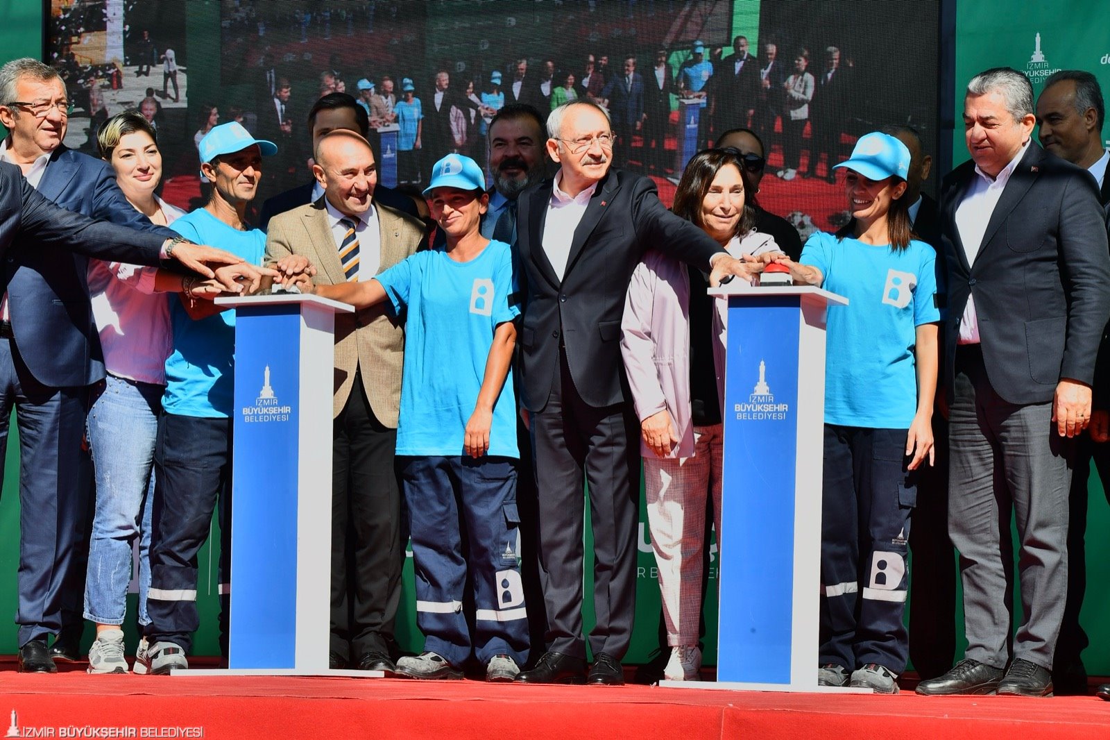 Sürdürülebilir kent hedefiyle çalışmalarını sürdüren İzmir Büyükşehir Belediyesi'nin ambalaj atıklarını ayrıştırmak için belediye iştiraki İzDoğa eliyle Konak'ta kurduğu İzDönüşüm Ambalaj Atığı Toplama ve Ayrıştırma Tesisi bugün törenle açıldı. Törene Cumhuriyet Halk Partisi (CHP) Genel Başkanı Kemal Kılıçdaroğlu ile eşi Selvi Kılıçdaroğlu, İzmir Büyükşehir Belediye Başkanı Tunç Soyer, CHP İzmir İl Başkanı Deniz Yücel, CHP’li yöneticiler, milletvekilleri, il ve ilçe belediye başkanları, sivil toplum kuruluşlarının temsilcileri, muhtarlar, belediye meclis üyeleri, siyasi parti temsilcileri, tesis çalışanları ve vatandaşlar katıldı.