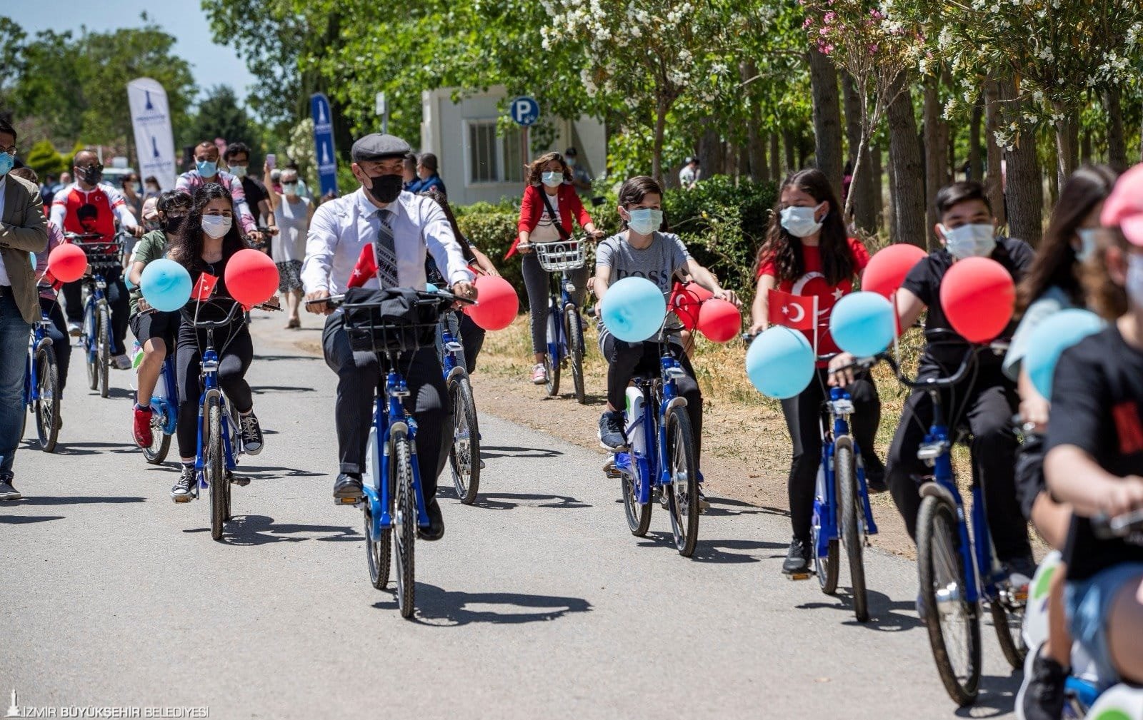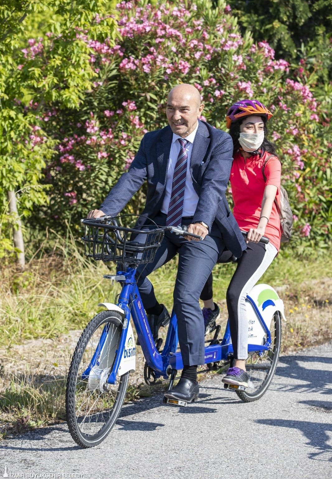 Otomobil odaklı çözümlerin, özellikle kent merkezlerinde yoğun trafik yükü ortaya çıkardığını ve pandemi ile birlikte trafikteki araç yükünün arttığını söyleyen İzmir Büyükşehir Belediye Başkanı Tunç Soyer, “Sürdürülebilir ve dirençli bir kent olma hedefi doğrultusunda her alanda olduğu gibi ulaşımda da bütünsel ve kapsamlı bir politika yürütüyoruz. Pandemi döneminde bisikletin değeri tüm dünyada daha iyi anlaşıldı. Ulaşım politikalarında bizim bisikletli ulaşıma ayırdığımız alanın ne kadar önemli olduğu anlaşıldı. Temel amacımız enerji verimliliği yüksek, kaynakları daha az tüketen, güvenilir, sağlıklı, doğaya saygılı ve erişilebilir ulaşımı teşvik etmek. İnsanlarımız iki teker üzerinde daha çok zaman geçirsinler, bisikletli ulaşımı daha çok tercih etsinler istiyoruz. Kent içindeki birçok arterde yeni bisiklet yolları yapımına başladık. Güvenli bisiklet yollarıyla vatandaşlarımızı ulaşmak istedikleri her yere taşımak istiyoruz. Şehir merkezinde uygulanan bisiklet park yerleri ile bisiklet tamir istasyonlarını merkez dışı ilçelerde de yaygınlaştırıyoruz” dedi.
