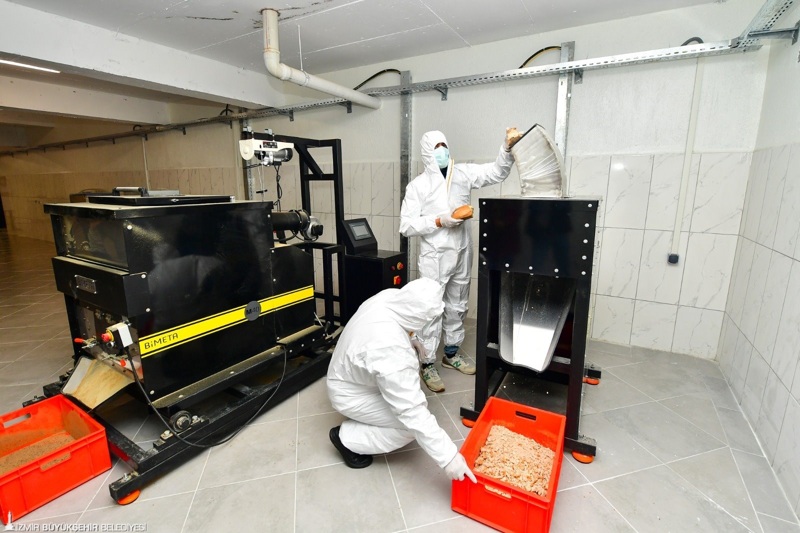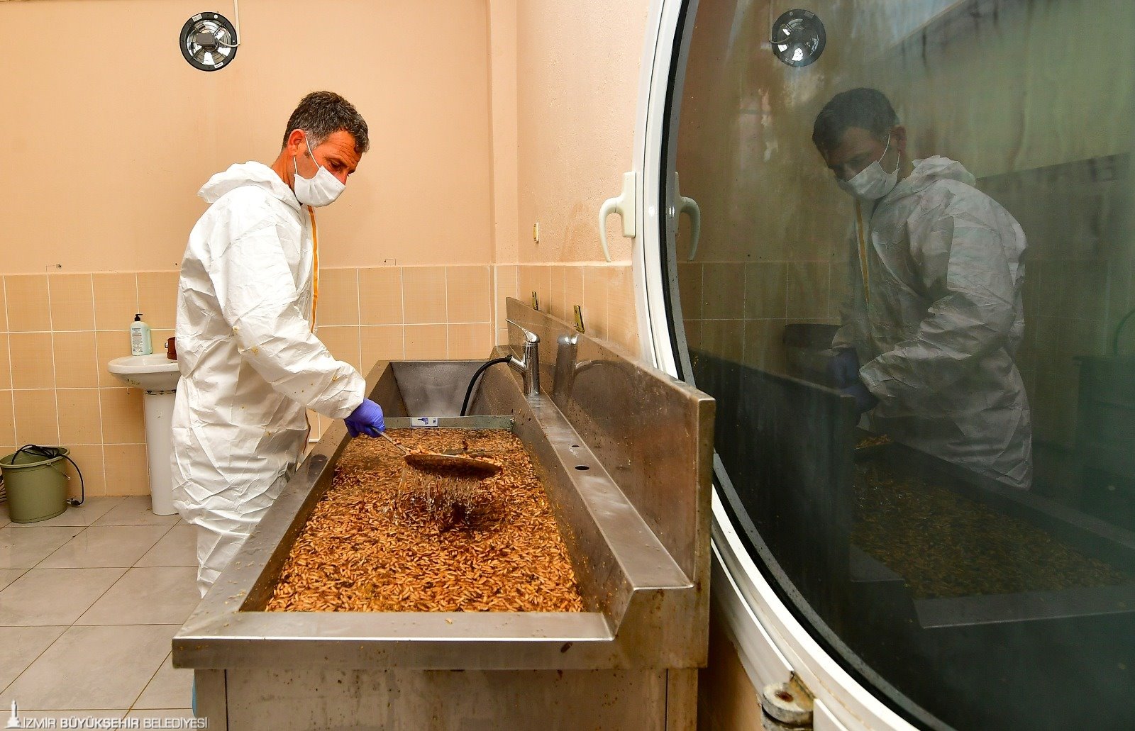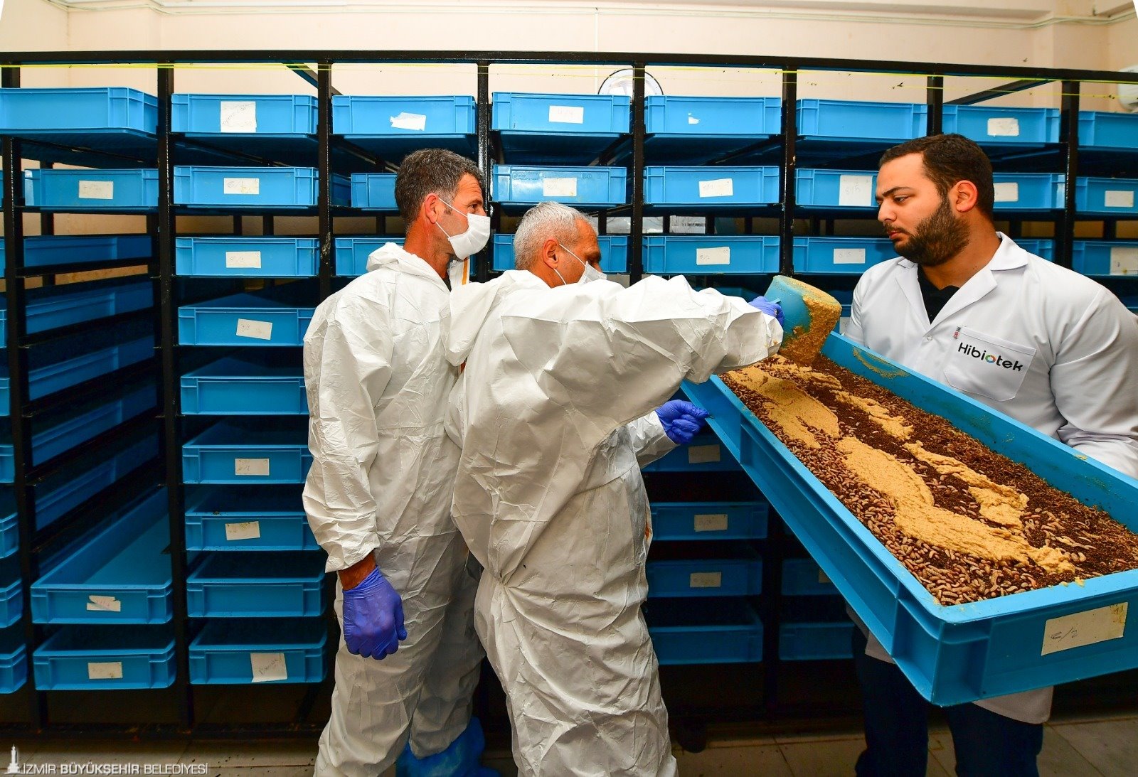İzmir Büyükşehir Belediyesi, can dostlar için Türkiye’de benzeri bulunmayan bir projeyi hayata geçirdi. Belediye bünyesinde kurulan tesiste, köpek maması üretiminde kullanılmak üzere hammadde elde ediyor. Tesiste doğa dostu, tropikal iklimde yaşayan, ağzı ve iğnesi olmayan, herhangi bir ısırma, hastalık taşıma riski barındırmayan çok kısa ömürlü siyah asker sinekleri kullanılıyor. Siyah asker sineği (BSF) larvaları hasat edilerek yüksek oranda protein, kalsiyum içeren, hiçbir katkı maddesi ve koruyucu barındırmayan BSF unu elde ediliyor. Burada elde edilen un, İzmir Pako Sokak Hayvanları Sosyal Yaşam Kampüsü bünyesinde bulunan mama üretim tesisindeki son işlemin ardından mamaya dönüştürülüyor.