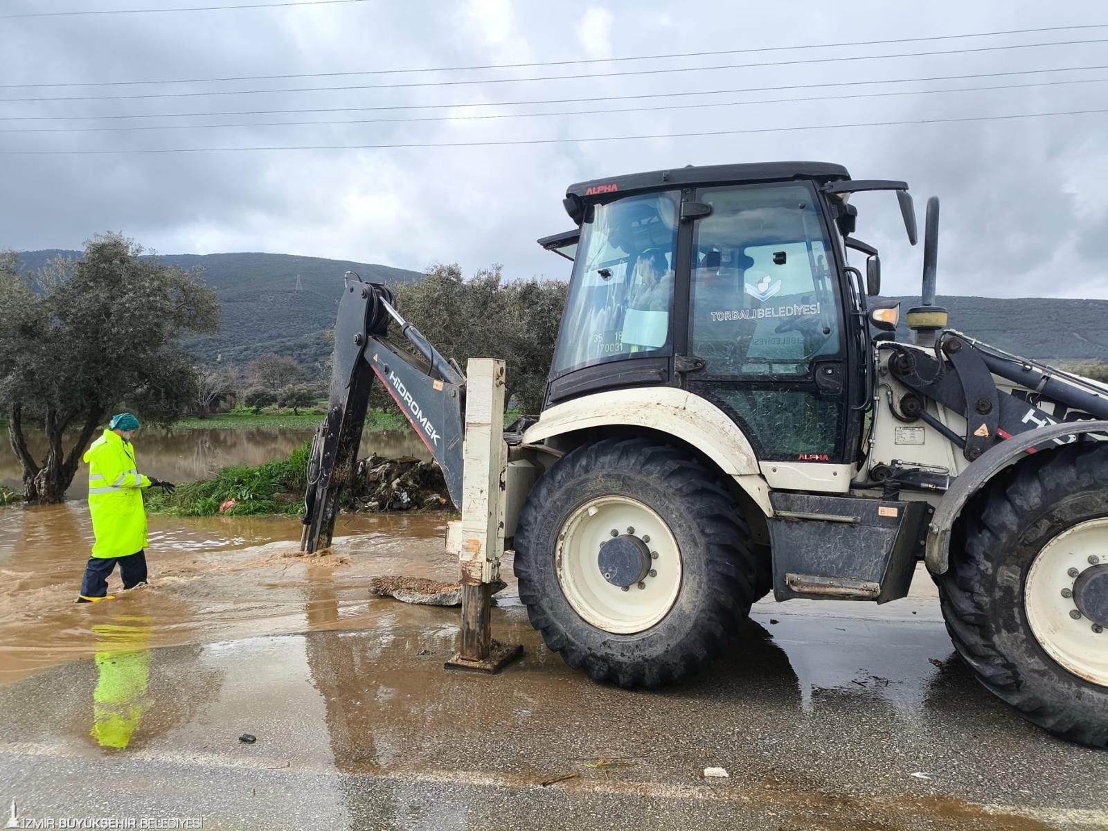 Yağışlardan etkilenen bir diğer nokta da Torbalı’nın Özbey Mahallesi ile Ahmetli arasındaki bazı bölgeler oldu. Su baskını ihbarlarına ise İZSU ve yol bakım ekipleri tarafından müdahale edildi. Ekipler, suyun tahliyesi ve ulaşımın aksamaması için tüm imkânlarıyla sahada görev yaptı, olumsuzlukların büyümesini önledi. Kemalpaşa’da Ulucak ve Yaylaköy mahallelerini kapsayan Necdet Bükey Caddesi ulaşım yolunda köprü taş tahkimatı ve temizlik çalışmaları tamamlanarak yol güvenliği artırıldı. Torbalı Taşkesik’te bir vatandaşın tarlasına geçiş yolu yapmak için dere yatağını kapatması sonucu oluşan taşkın sorunu ise yürütülen çalışmayla çözüldü. Torbalı Yeniköy Mahallesi’nde yağmurdan dolayı kapanan yolda çalışmalar devam ediyor. Seferihisar Çolak İbrahim Bey Mahallesi’nde İzmir Caddesi ile Beyler Caddesi arasındaki bağlantı yolu çalışması saha düzenleme ve tahkimat çalışmaları sürüyor. Bayındır Zeytinova’da göçük temizleme çalışması da tamamlandı. İzmir Büyükşehir Belediyesi ekipleri, altyapı yatırımları süresince yaşanan aksaklıkların geçici olduğunu, ekiplerin yağışlı hava koşullarına rağmen kesintisiz çalıştığını belirterek, çalışmalar tamamlandığında İzmir’in daha güvenli ve dirençli bir altyapıya kavuşacağını ifade etti.
