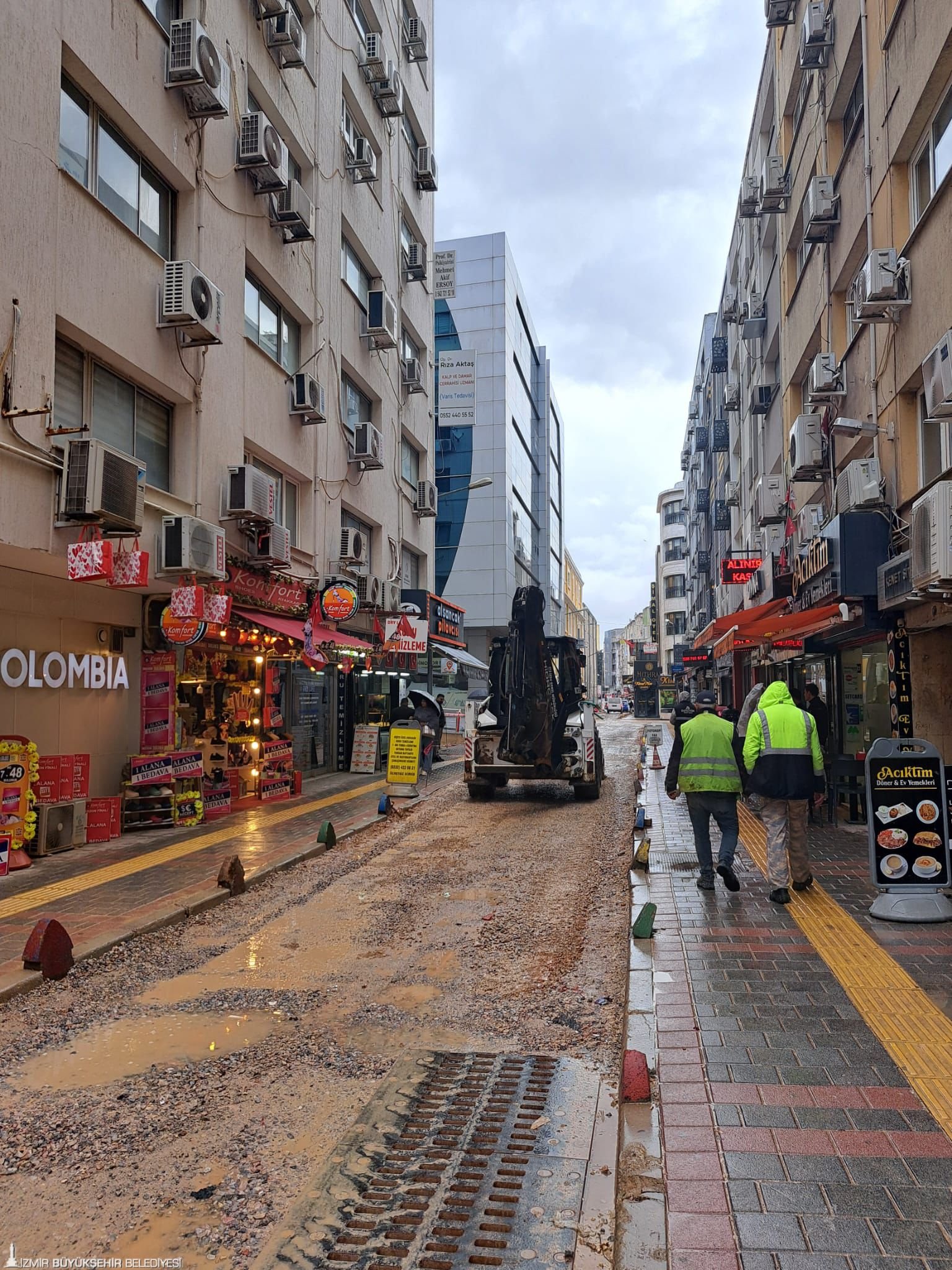 Yoğun yağış ve olumsuz hava koşulları nedeniyle iş makinelerinin güvenlik gerekçesiyle zaman zaman çalışamaması, bazı sokaklarda kısa süreli su birikintilerine yol açtı. Oluşan durumun ardından Yol Yapım Bakım ve Onarım Dairesi Başkanlığı ekipleri hızla sahaya yönlendirildi. Kazı alanlarında dolgu malzemesi dökümü yapılarak yol kotları geçici olarak düzenlendi, bozulan kaplamalar onarıldı ve sürüş güvenliği sağlandı. Ayrıca ekipler, Alsancak’ta 1476/1 Sokak’ta asfalt serim çalışmalarının önümüzdeki hafta başlatılacağını da duyurdu.